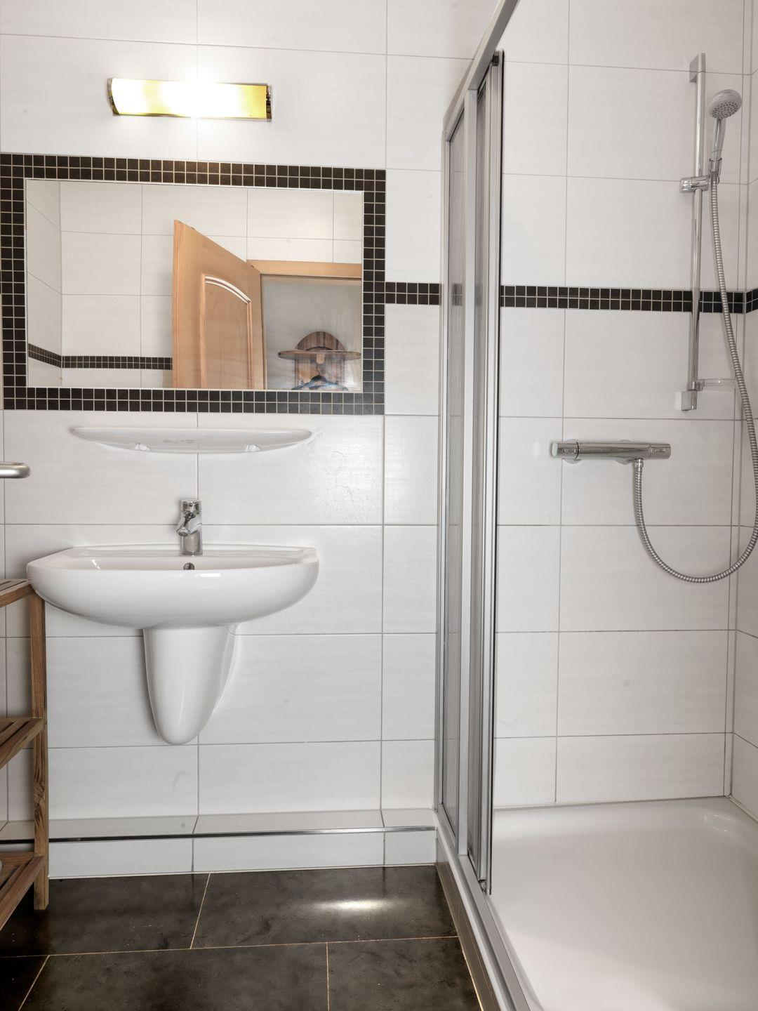 Das Badezimmer ist mit einer Dusche und einem WC ausgestattet, sodass Sie sich hier frisch machen können. Für unsere kleinen Gäste stellen wir gerne ein Kinderreisebett und einen Kinderhochstuhl bereit, damit auch sie sich rundum wohlfühlen können.