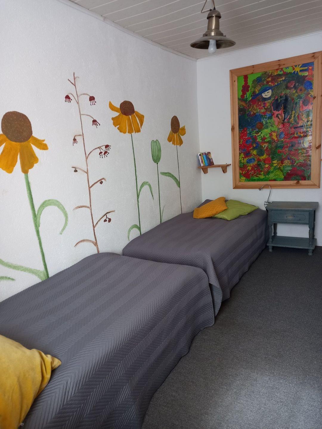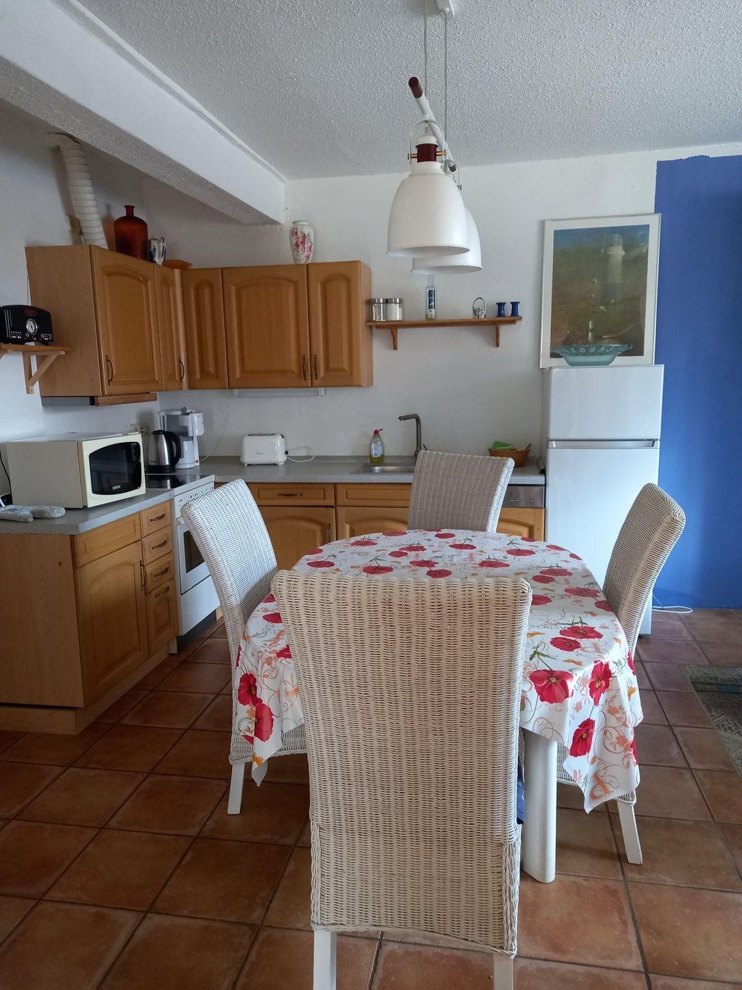 Alle Zimmer dieser Doppelhaushälfte befinden sich im Erdgeschoß. Vom Flur, mit Garderobe und Spiegel gelangen Sie in das Wohnzimmer. Hier finden Sie den Kamin, eine Sitzgruppe bestehend aus Schlafcouch und Sessel, sowie einen Wohnzimmerschrank, eine Anrichte, ein TV-Gerät und ein Esstisch mit sechs Stühlen. Die offenen Küche ist mit einer Kaffeemaschine, einem Toaster, einem Wasserkocher, einem Herd mit Backofen, einem Geschirrspüler, einer Mikrowelle, einem Kühlschrank mit Tiefkühlfach und einer Kühltruhe ausgestattet. Im Bad ist eine Dusche. Das erste Schlafzimmer ist mit einem Doppelbett und einem Kleiderschrank eingerichtet. Im zweiten Schlafzimmer befinden sich drei Liegen und ein Kleiderschrank. Im großen Garten stehen Ihnen Terrassenmöbel und ein Holzkohlegrill zur Verfügung. Eine Lagerfeuerstelle ist vorhanden. Ihr PKW hat ein Platz auf dem Grundstück.