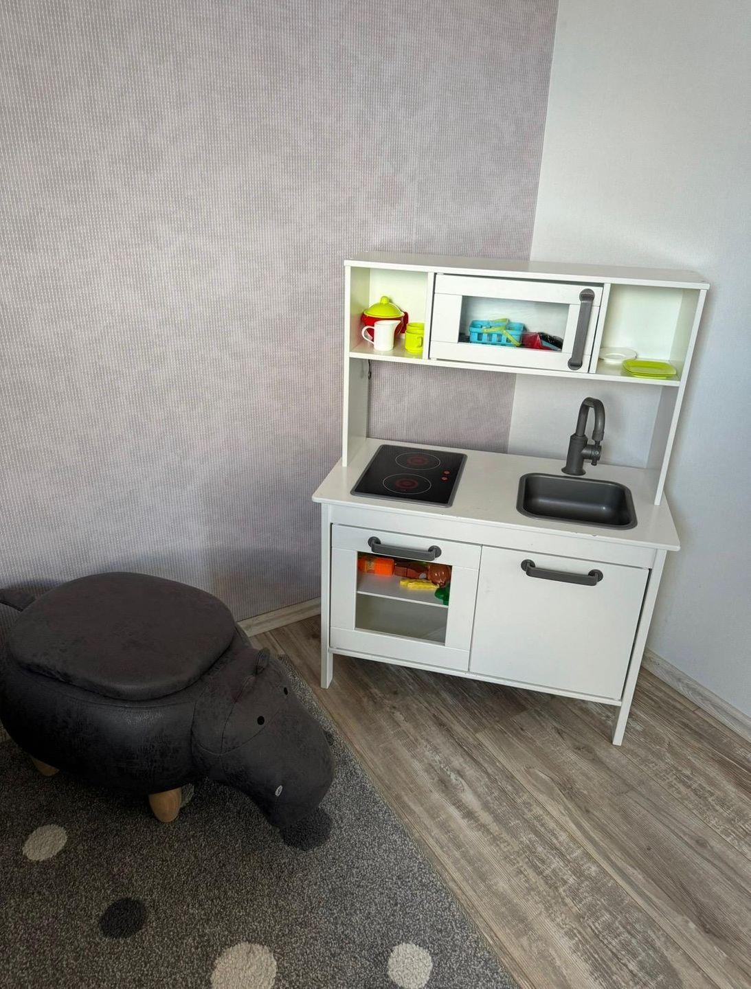 Die Küche ist komplett ausgestattet mit einem Kühlschrank mit Gefrierfach, Backofen und Ceranfeld, Geschirrspülmaschine sowie Kaffeemaschine, Toaster und Wasserkocher.