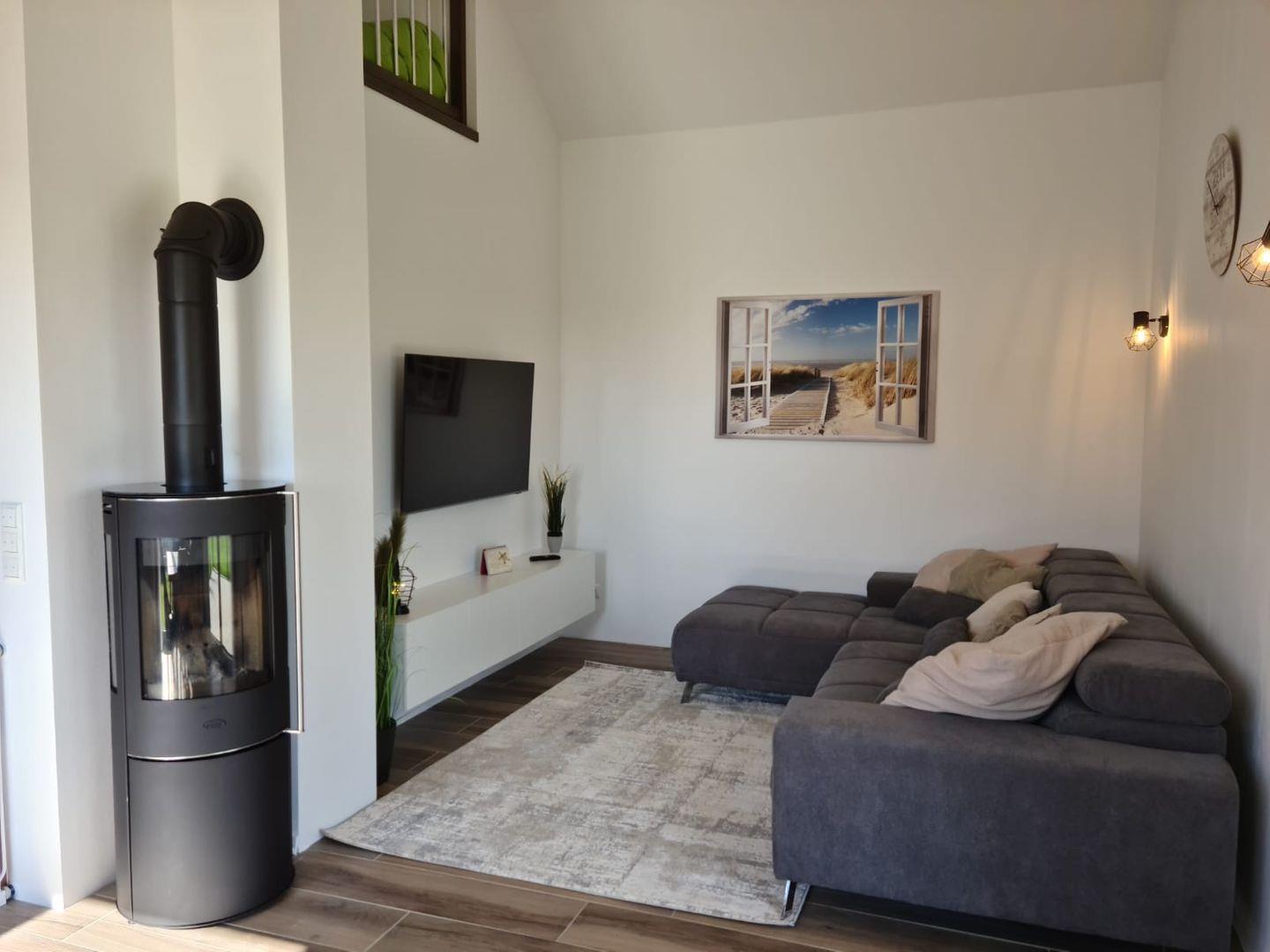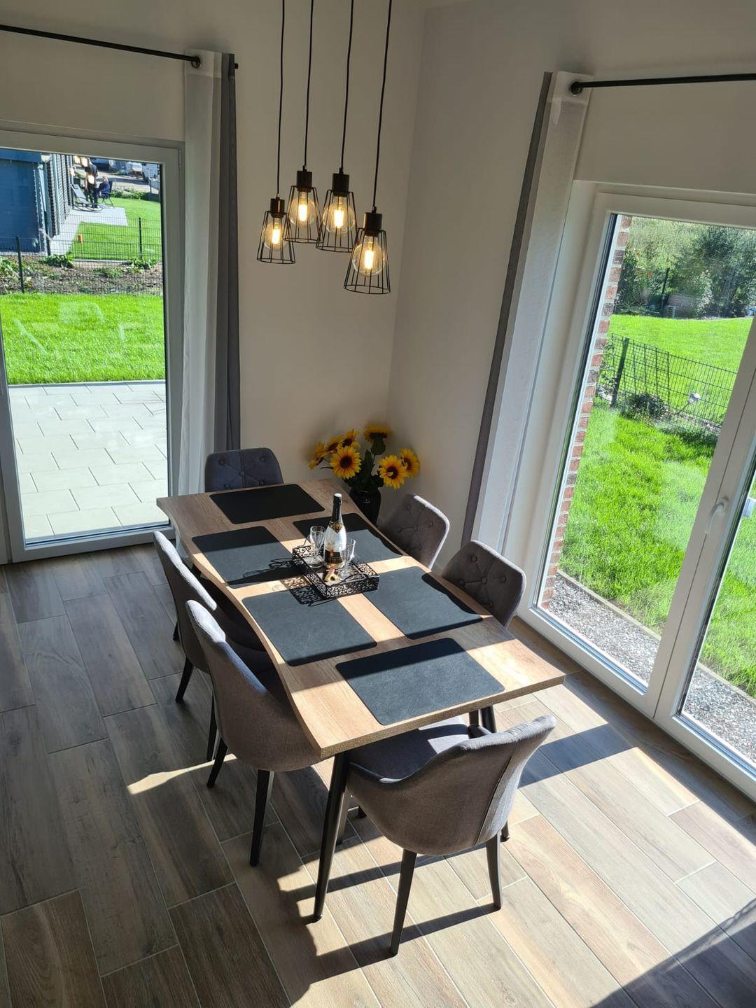 Ein großzügiger Wohn- Essbereich mit Kamin bietet ausreichend Platz zum entspannen und wohlfühlen.