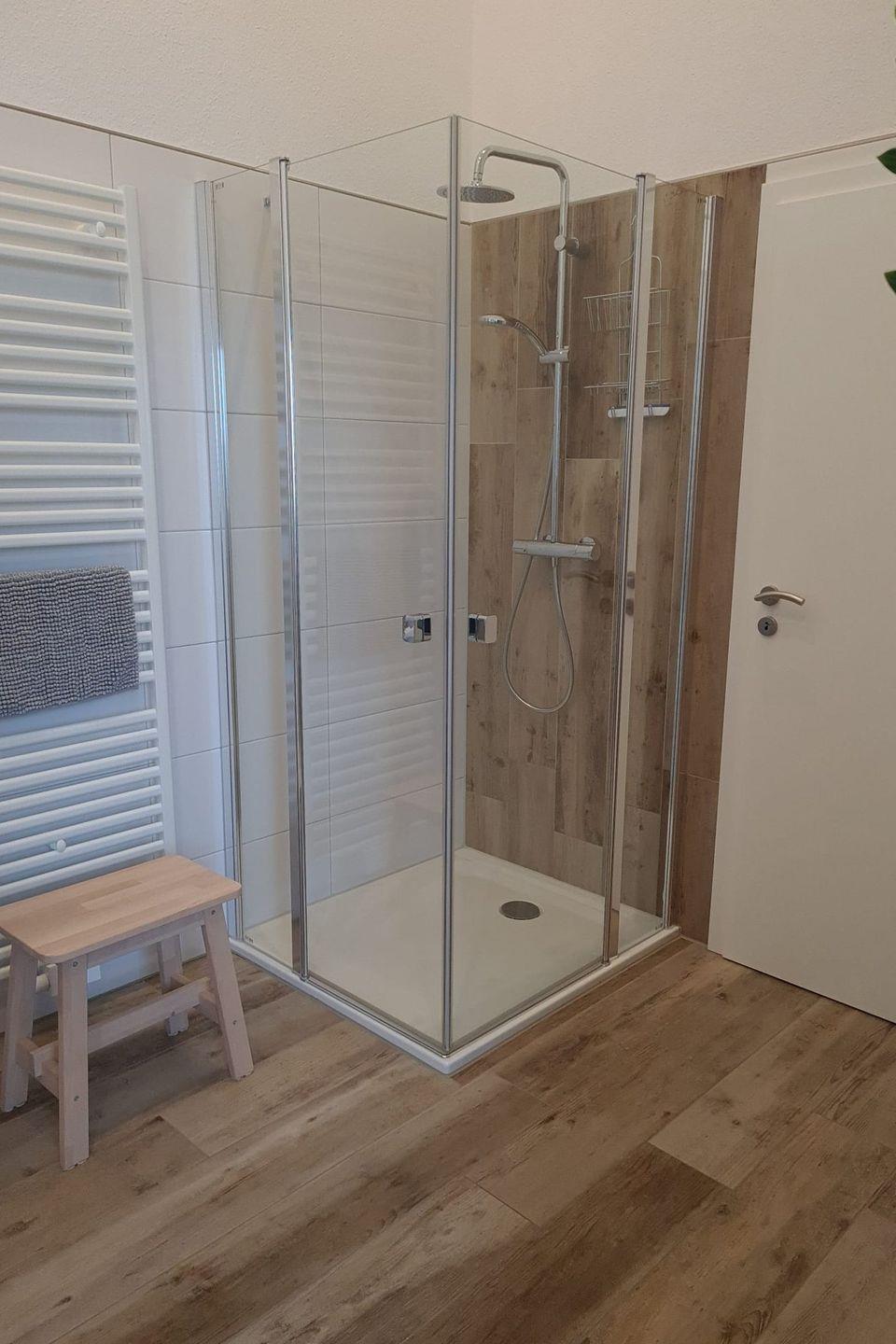 Das große Badezimmer ist ein Wellnessbereich mit großer Regendusche und einer Infrarotkabine, die nach langen Spaziergängen zum Aufwärmen einlädt.