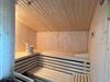 Durch das moderne Bad mit ebenerdiger Dusche erreichen Sie einen Extraraum mit einer Sauna (für ca. 3-4 Personen) und einer Waschmaschine.