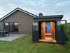 Die Sauna im Außenbereich bietet mit einem Ausblick über die Wiesen erholsame Entspannung.