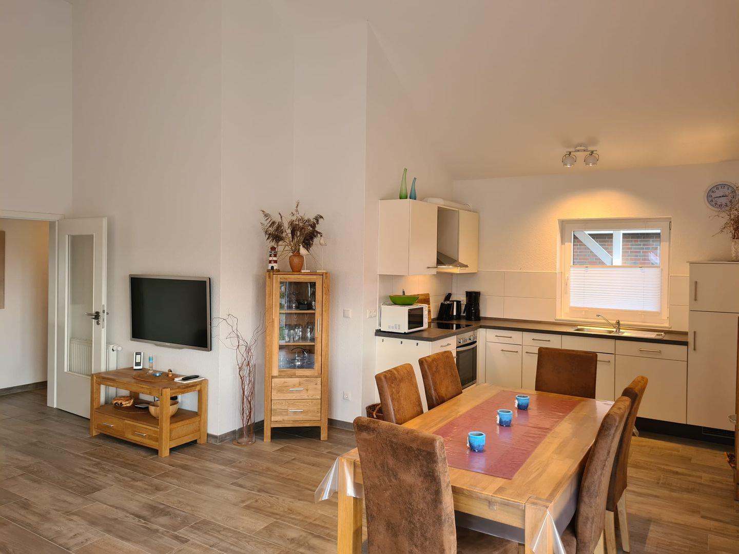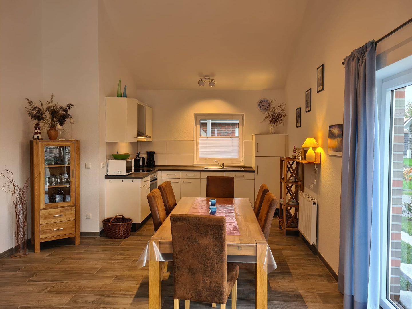 Das schöne Ferienhaus, frisch erbaut in 2020, bietet ein herrliches Ambiente, um einen entspannten Urlaub am Jadebusen zu verleben. Die Einrichtung ist stilvoll sowie komfortabel und auf 4 Personen ausgerichtet. Ein geschmackvoll gestalteter Wohn- und Essbereich mit einer individuell ausgestatteten Küchenzeile vermitteln ein Gefühl von Ankommen und Wohlfühlen. Zwei separate Schlafzimmer sowie ein modernes Badezimmer mit großer bodentiefer Dusche runden das Angebot ab.