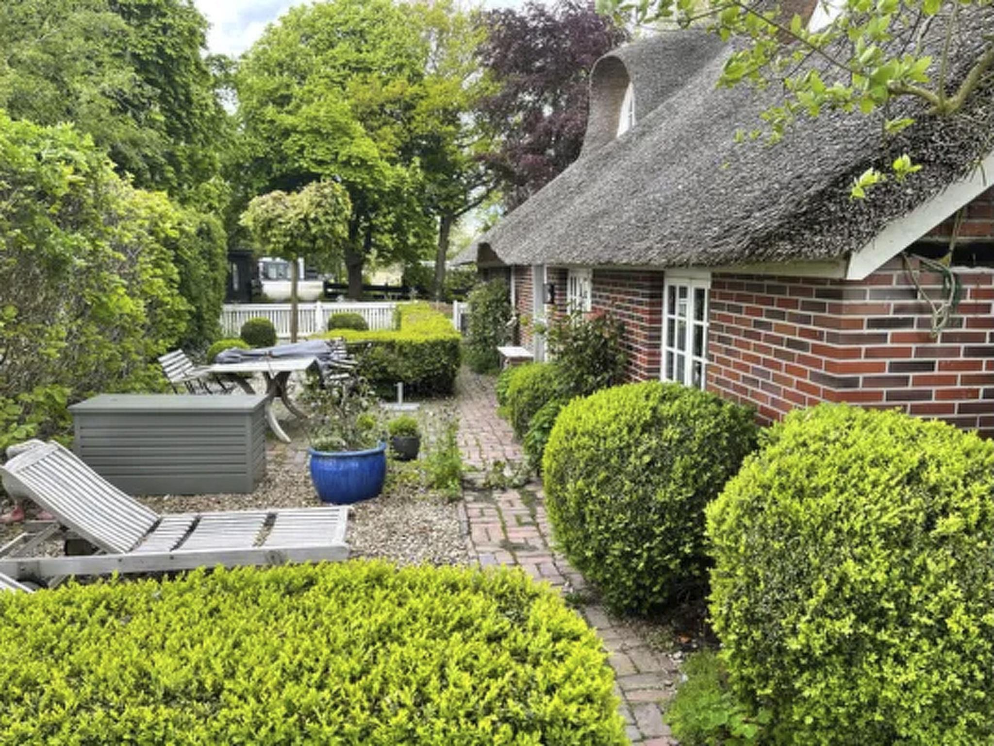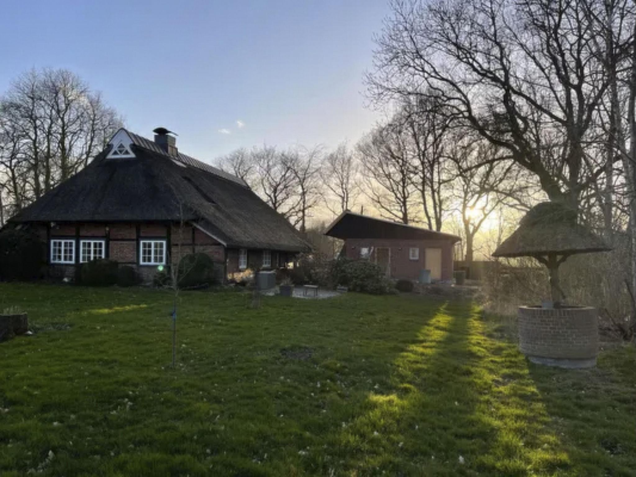 Großes Reetdachhaus auf 4.500m² großem Grundstück Baujahr des Hauses: 1764 Platz und Betten für bis zu 10 Personen (9 Erwachsene + 1 Kind bis zu einer Größe von max. 1,40m) Lichtdurchfluteter Kinderbereich im Dachgeschoss - Zugang über steile und enge Wendeltreppe. Drei modernisierte Badezimmer mit zwei fast bodenebenen Duschen und moderner Badausstattung Vollumfängliche Renovierung in 2017 mit neuem Reetdach Traumküche mit Gaggenau Induktionsfeld und Miele Backofen, Kaffeemaschine und Geschirrspülmaschine, der perfekte Raum, um gemeinsam zu kochen. Offener Kamin im Wohnraum. Hochwertige Ausstattung und Möblierung (Marktex Möbel, Schramm Doppelbett) Sauna für bis zu sechs Personen angeschlossen an das große Badezimmer mit direktem Zugang nach draußen. Abgeschiedene Lage in der Wesermarsch (5 km zum Jadebusen mit renaturierten Salzwiesen, 8 km zum Vareler Hafen, 15 km ins Nordseebad Dangast, 41 km nach Jever, 68 km nach Neuharlingersiel: Fähre nach Spiekeroog und Wangerooge. Fahrräder vorhanden und Nutzung im Mietpreis inbegriffen.