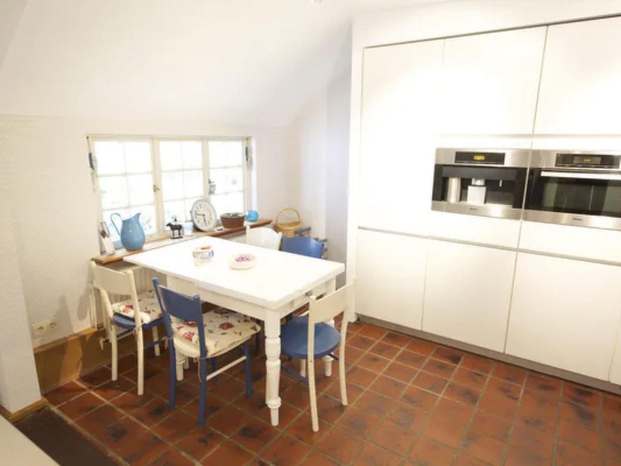 Küche: große Kochinsel mit Gutmann Dunstabzugshaube, Gaggenau 90cm 5 Platten Induktionskochfeld mit passendem Kochgeschirr (Jamie Oliver), Miele Kombigerät mit Backofen und Mikrowelle Miele Kaffeemaschine Miele Geschirrspülmaschine Kühlschrank mit Gefrierteil Espressomaschine Expressi (Kapselsystem von ALDI) Wasserkocher und Set für handgefilterten Kaffeesehr gute Bäckerei in 8km Entfernung (Jaderberg)