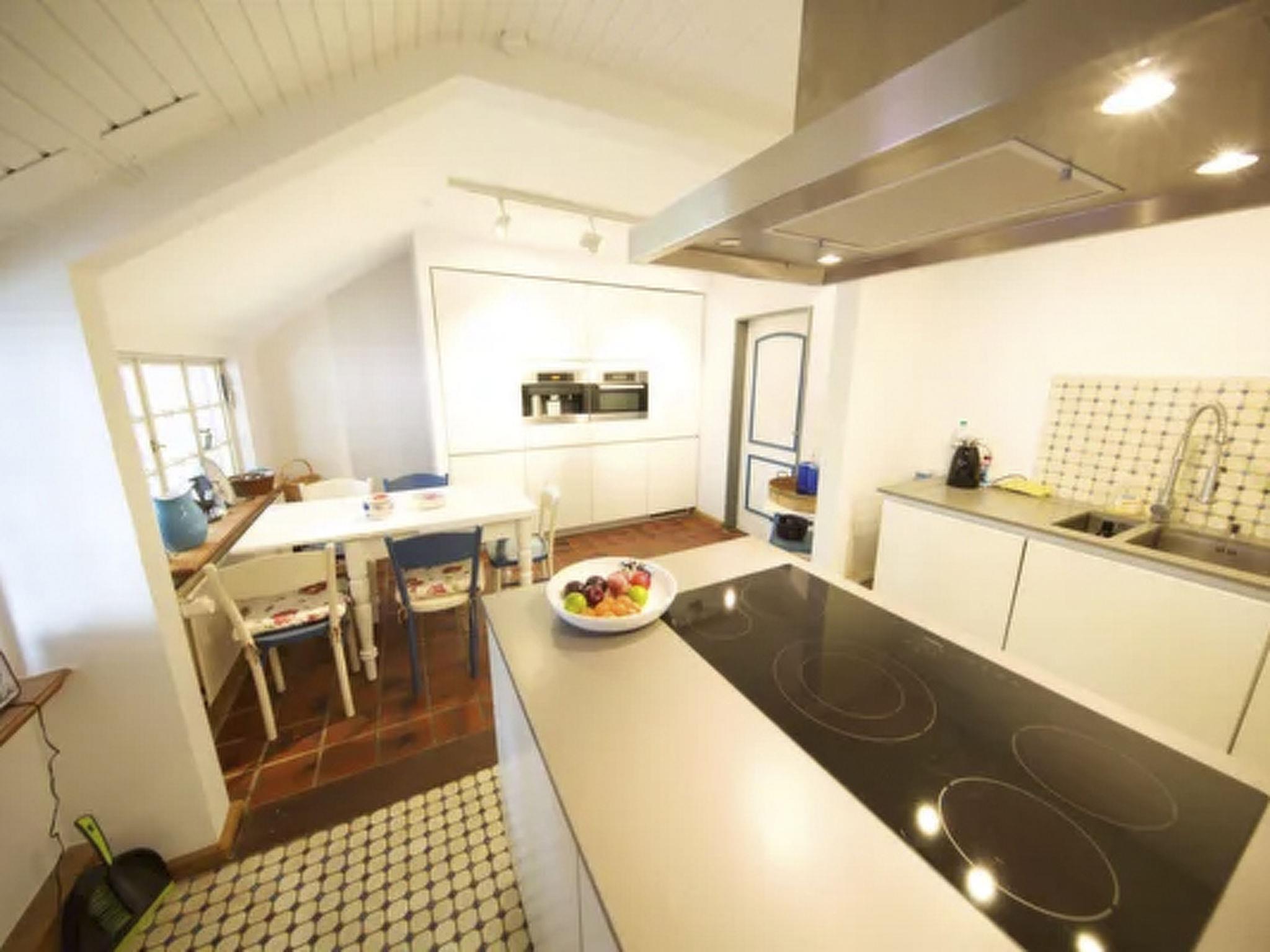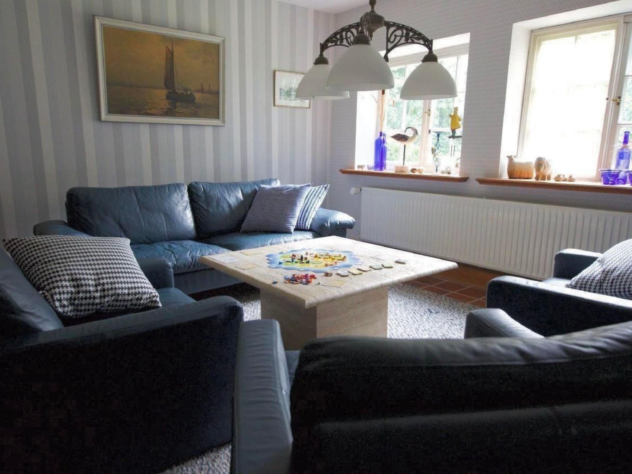 Nichtraucherhaus, 1 Küche, 1 Wohnzimmer, Wohnzimmerausstattung :Wohnbereich mit Sitzgruppe in Leder blau, großer LCD-Fernseher mit SAT-Empfang und DVD-Player, Stereo-Anlage mit Anschluss an Internet (Internetradio, Airplay, etc.) Esstisch für max. 8 Personen (weitere Stühle vorhanden), Kamin samt schöner Kaminsessel