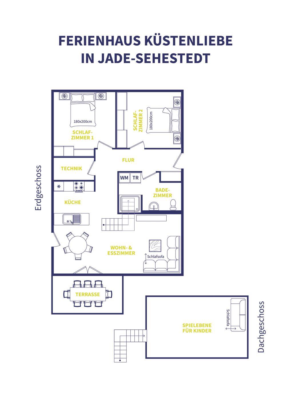 Zusätzliches Schlafsofa (1 Erwachsener oder 2 Kinder) auf der Spielebene