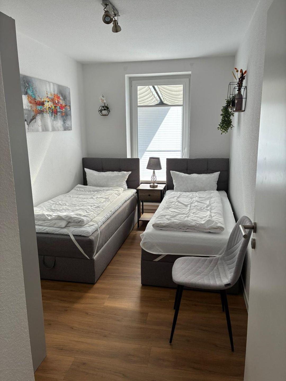 Schlafzimmer 2 im Erdgeschoss: 2 Einzelbetten 100x200 cm (Boxspring)