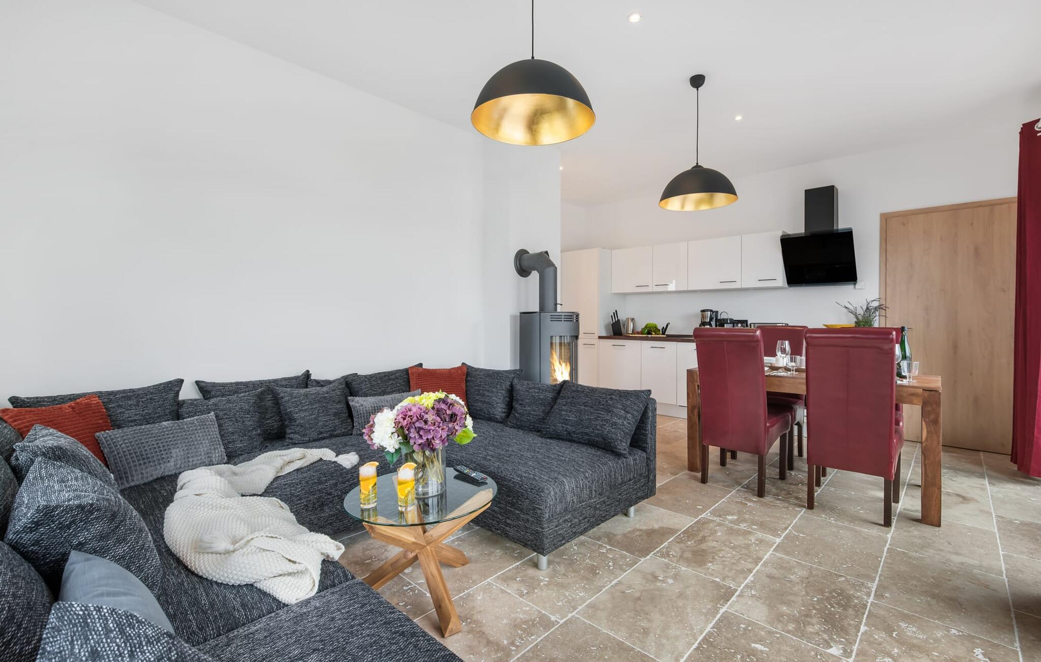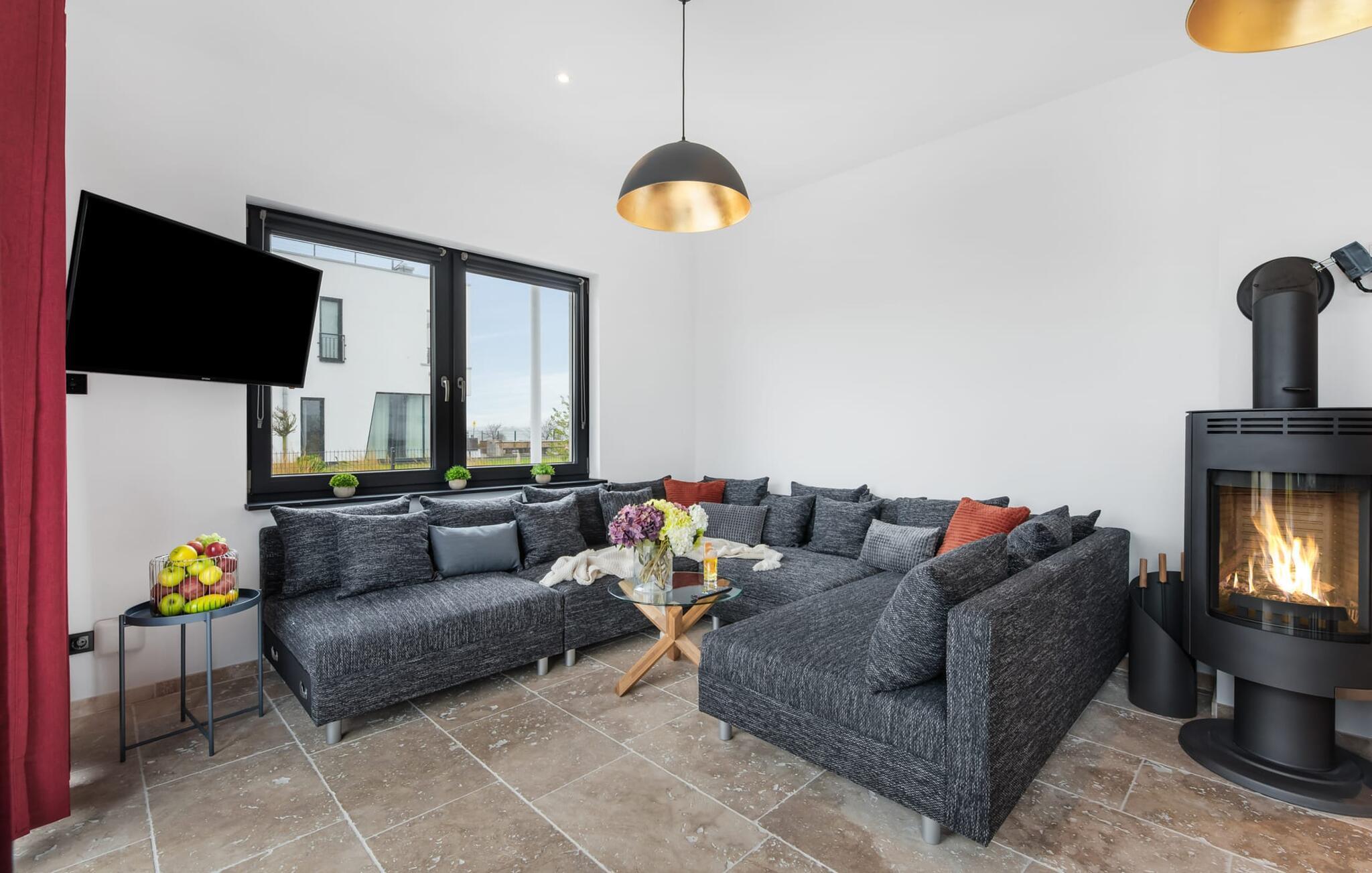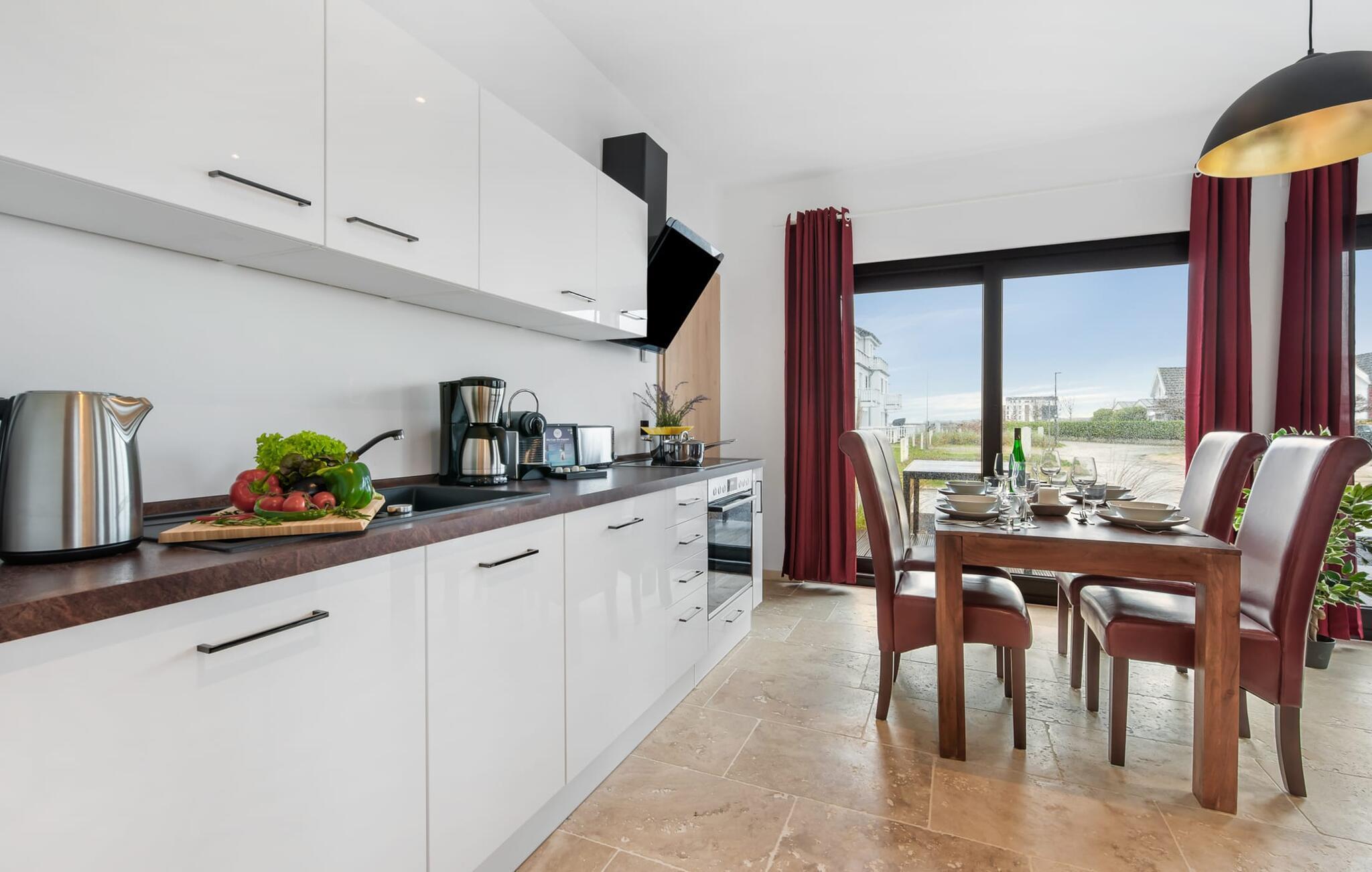 Die rundum ausgestattete moderne Markenküche von Bosch bietet alle Annehmlichkeiten, hier bleiben keine Wünsche offen. Dank Fußbodenheizung und Kamin ist die Wohnung für jede Jahreszeit bestens geeignet. Ob mit Buch und Wein, bei einem spannenden Film oder romantisch vor dem knisternden Feuer des Kaminshier beginnt Urlaub!