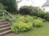 Von der Straße aus sind es sieben Stufen in den Garten, der Eingang liegt direkt im Garten.