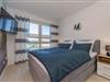 Zwei stilvolle Schlafzimmer bieten angenehme Rückzugsorte. Das erste Schlafzimmer ist mit einem Doppelbett (1,80 m x 2,00 m), TV und Kleiderschrank ausgestattet. Das zweite Schlafzimmer verfügt über ein komfortables Boxspring-Doppelbett (1,60 m x 2,00 m), ebenfalls mit eigenem TV und Kleiderschrank. Zwei moderne Bäder sorgen für zusätzlichen Komfort. Das Hauptbad bietet eine großzügige Dusche und eine Waschmaschine, das zweite Bad verfügt über eine bodengleiche Dusche.