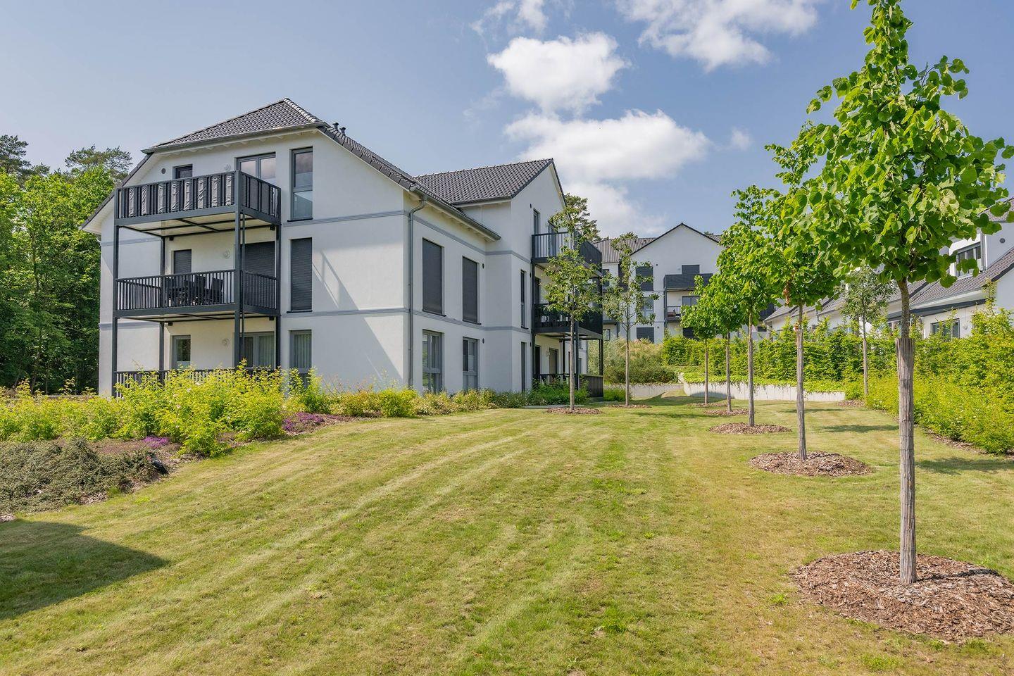 Moderne Ferienwohnung im Bernsteinquartier Kölpinsee mit Balkon, Infrarotkabine und Strandnähe für erholsame Urlaubstage.