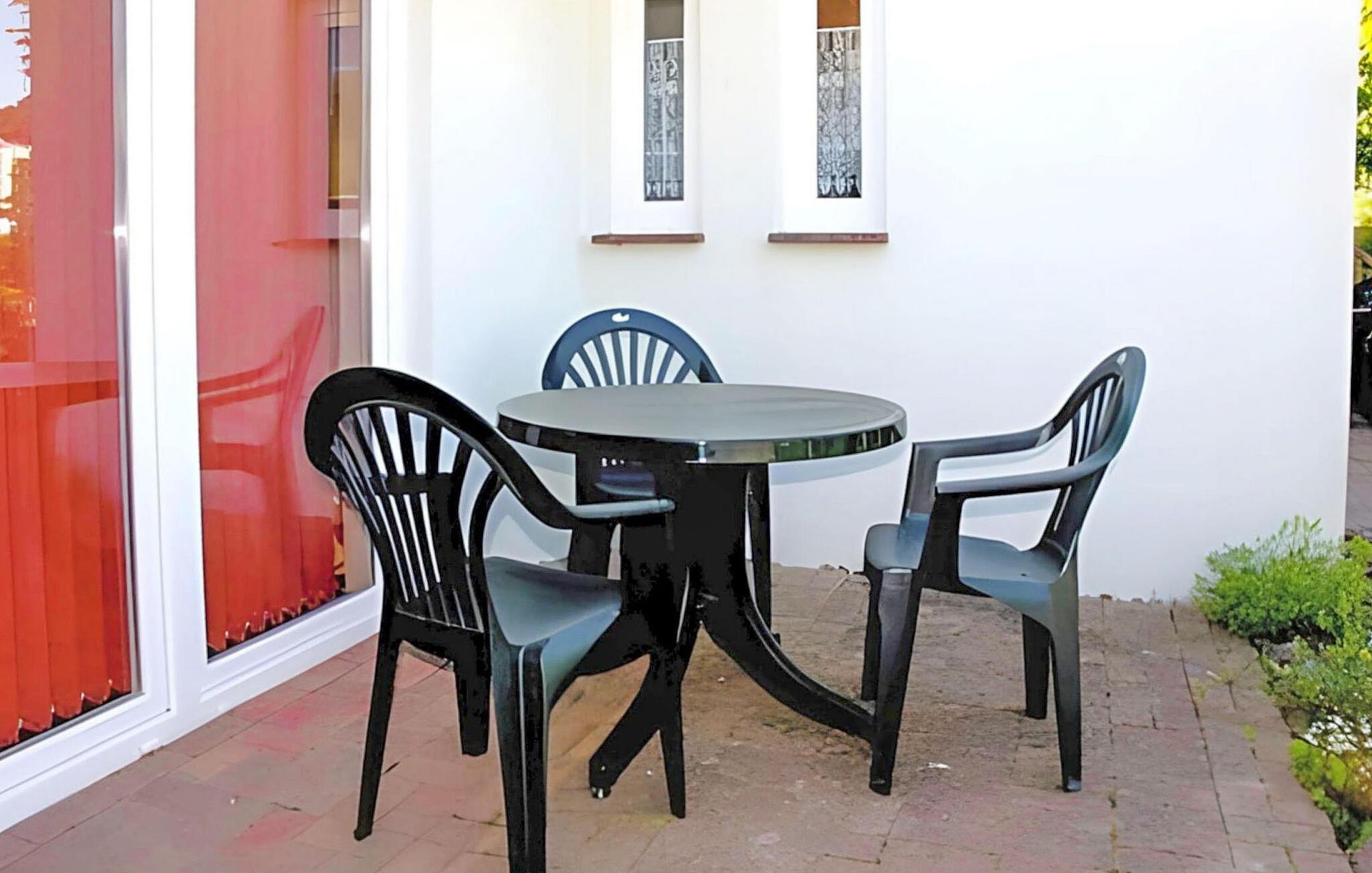 Diese eine von drei Ferienwohnungen befindet sich in einem separaten Ferienhaus im Reihenhausstil mit separatem Zugang. Ruhige Lage in einer Seitenstraße, ca. 500 m vom Strand entfernt. Die Wohnung verfügt über ein Wohnzimmer (Doppelschlafcouch, Essecke, TV, Radio), Schlafzimmer mit Doppelbett, Pantryküche mit 2-Plattenherd und Mikrowelle, Dusche/WC, Zentralheizung. Zur Wohnung gehört eine möblierte Terrasse mit Grill und ein kostenfreier Parkplatz. Nutzung einer Waschmaschine nach Absprache möglich. Im Gesamtpreis sind enthalten: Bettwäsche, Wasser- und Energieverbrauch. Sie müssen Ihre eigenen Handtücher mitbringen. Haustiere: Ein kleiner Hund (keine Katze) bis zu einer Größe von 40 cm ist in dieser Unterkunft gestattet. Bitte bringen Sie eine Matte/Schlafmöglichkeit (Decke, Korb) für Ihr Tier mit.