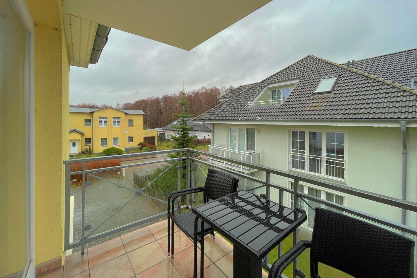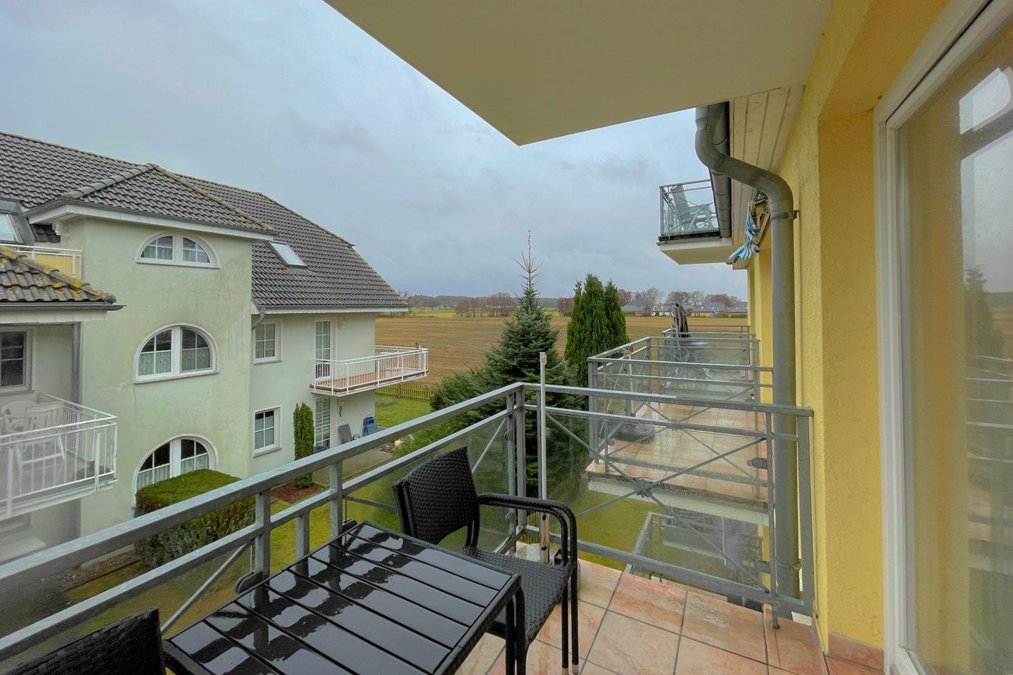 Ein besonderes Highlight der Unterkunft ist der Balkon, auf dem Sie morgens mit einem Kaffee in der Hand die frische Ostseeluft genießen oder abends den Sonnenuntergang bewundern können. Die Ferienwohnung befindet sich im ersten Stock eines gepflegten Gebäudes mit vier Etagen und bietet sowohl Garten- als auch Landschaftsblick. Hier können Sie einen ruhigen Rückzugsort finden und sich von der Hektik des Alltags erholen.