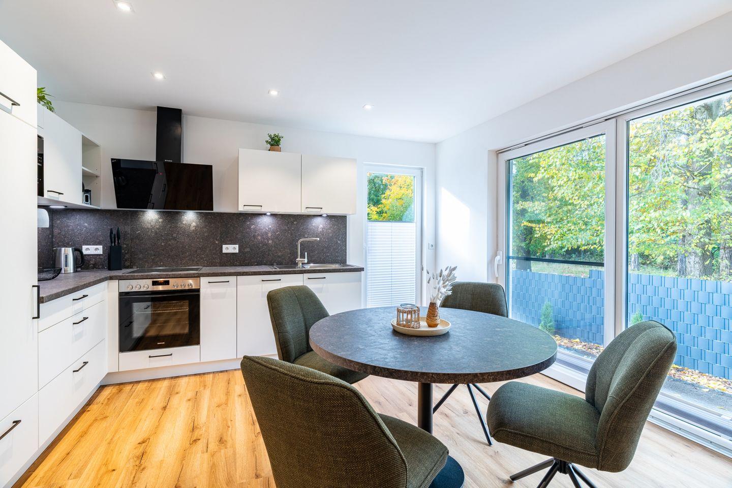 Das Grundstück umfasst einen 100 m² großen Garten mit gepflegter Liegewiese, Gartenmöbeln, Sonnenliegen und Sonnenschirm. Für gesellige Stunden steht ein Grillplatz mit Kohlegrill bereit. Auf dem sonnigen Balkon mit Gartenblick können Sie den Tag entspannt beginnen oder ausklingen lassen. Inmitten malerischer Natur – direkt am Wald und mit weitem Landschaftsblick – genießen Sie erholsame Stunden abseits des Alltags. Fliegengitter sowie Sichtschutz für alle Fenster sorgen dabei für zusätzlichen Komfort.