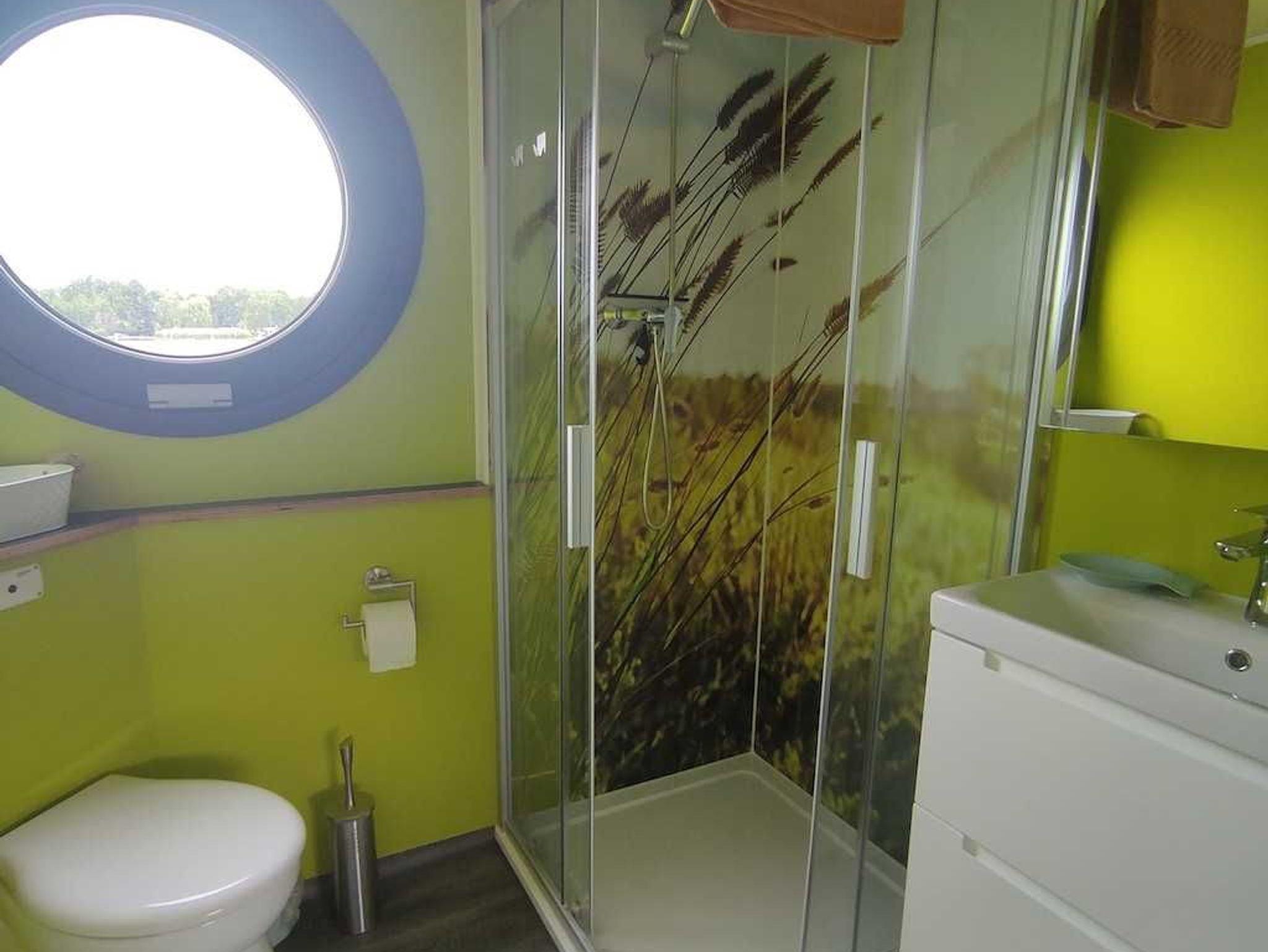 Es handelt sich um ein Hausboot vom Typ Woodstream 10,5 mit den Abmessungen 10,5 Meter x 3,5 Meter und 0,50 Meter Tiefgang. Ausgestattet mit einem 15 PS Motor mit Bugstrahlruder und Bugterrasse mit Fahrerstand,: einer Oberterasse mit Lounge-Möbeln, 1 großem Wohnraum mit Couchecke (Schlafcouch) und Kamin, kompletter Küche und Essplatz für 4 Personen, 2 Schlafräume für je 2 Personen, sowie einem großzügigem Bad mit Dusche und WC.