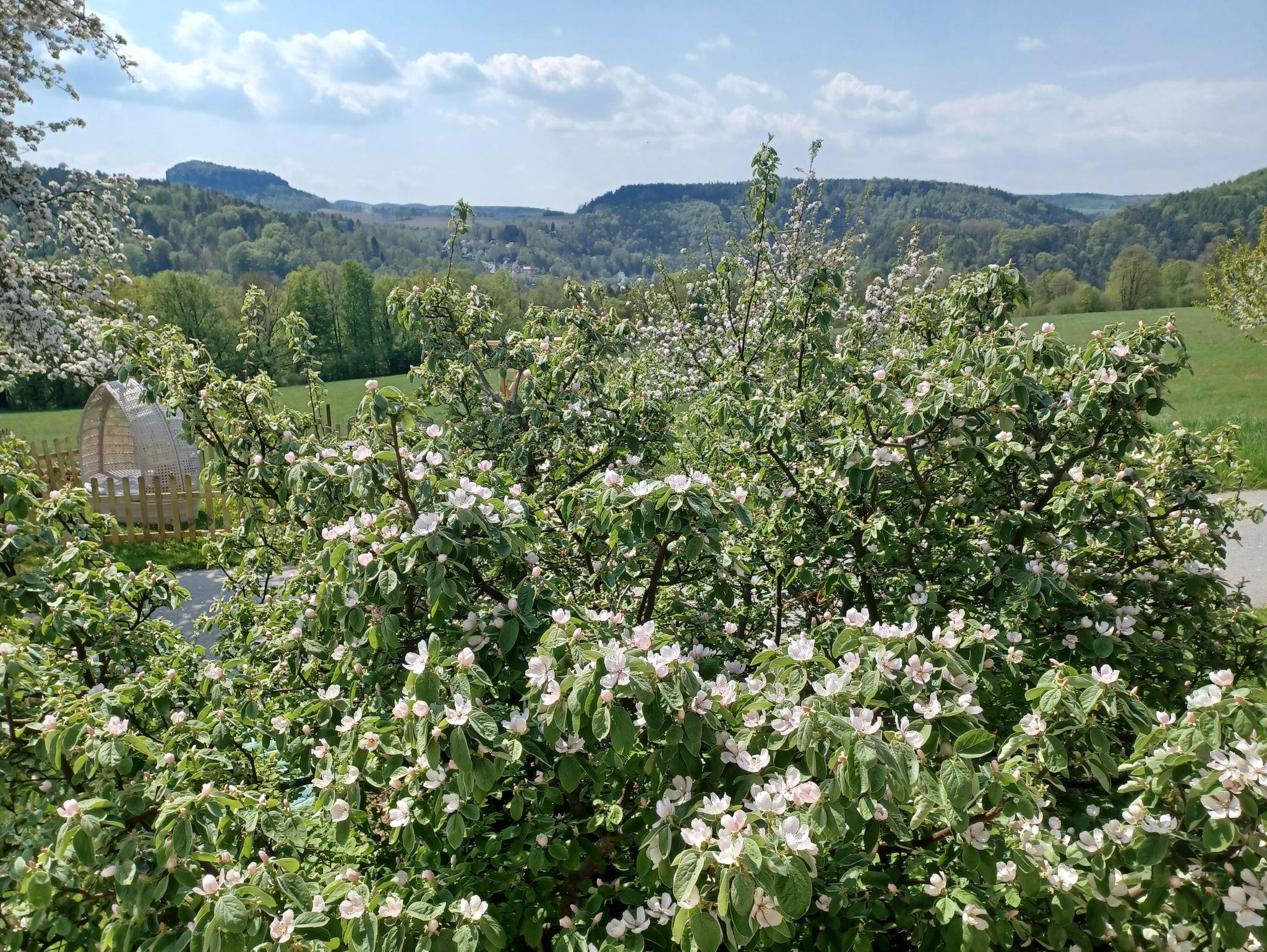 Das Haus ist von Wiese, Feld und Wald umgeben und befindet sich am Ende der Ortsstraße. Von hier haben Sie von allen Wohnungen einen Panoramarundblick.
