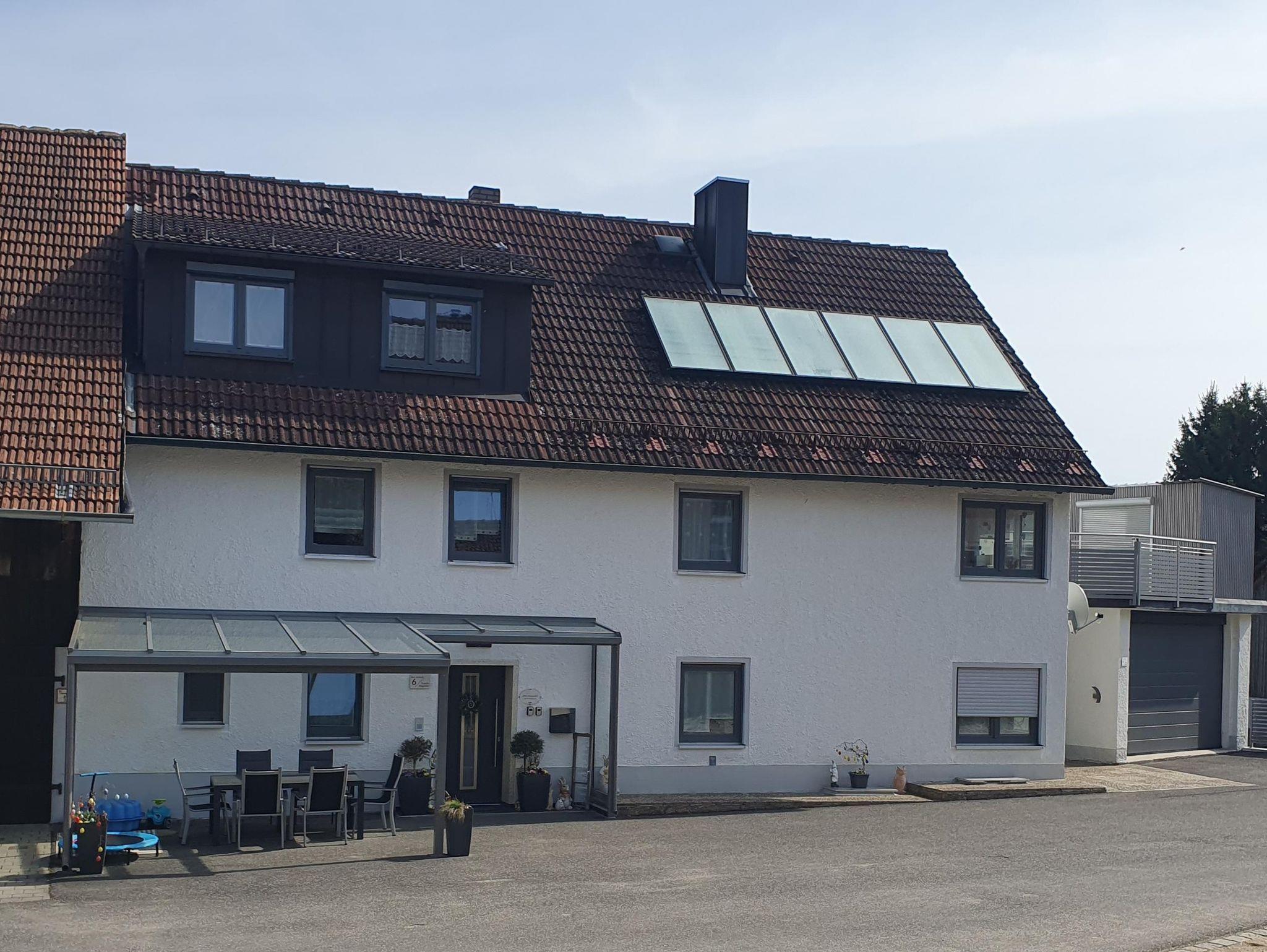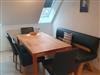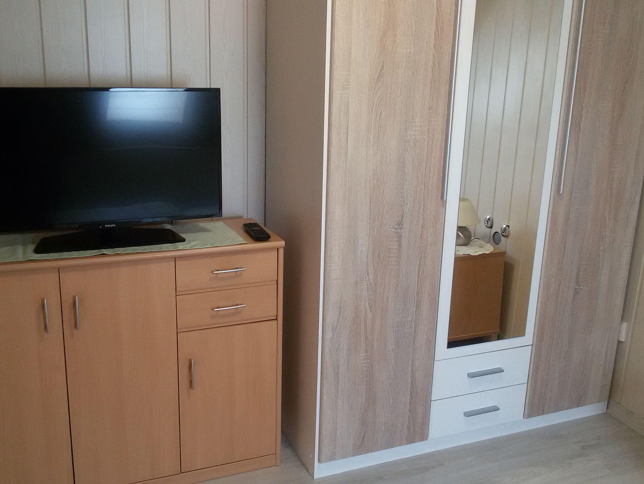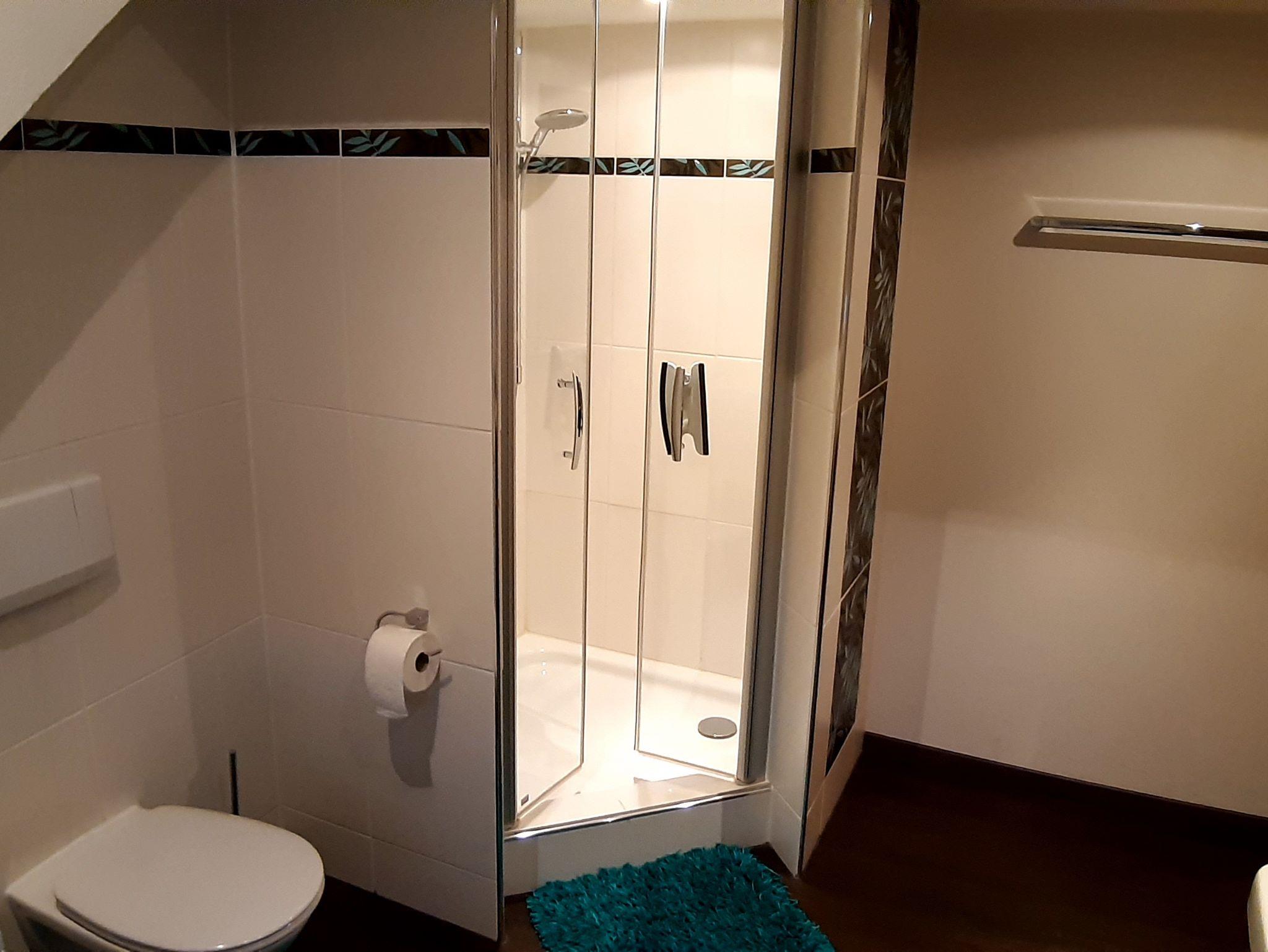 Die Ferienwohnung (67qm) befindet sich im Dachgeschoss unseres Hauses und bietet Platz für 4 Personen, mit Zustellbett sogar für 5 Personen. Sie verfügt über ein Schlafzimmer mit französischem Bett (1,40 x 2m )mit Flachbild-TV, und ein Wohn-Schlafzimmer mit 2Einzelbetten (die man auch zu einem Doppelbett zusammen stellen kann ) und Sitzbereich mit Flachbild-TV. Die komplett ausgestattete Küche mit Geschirrspüler, Kühlschrank, Herd, Backofen, Wasserkocher und Toaster lässt keine Wünsche offen. Einem geräumigen Badezimmer mit Dusche, WC, Waschtisch mit großem Spiegel, Fön und eine Waschmaschine mit integriertem Trockner rundet das Gesamtbild ab. Eine kleine Sitzgruppe und Parkmöglichkeit befindet sich vorm Haus. Bettwäsche und Handtücher sind vorhanden.