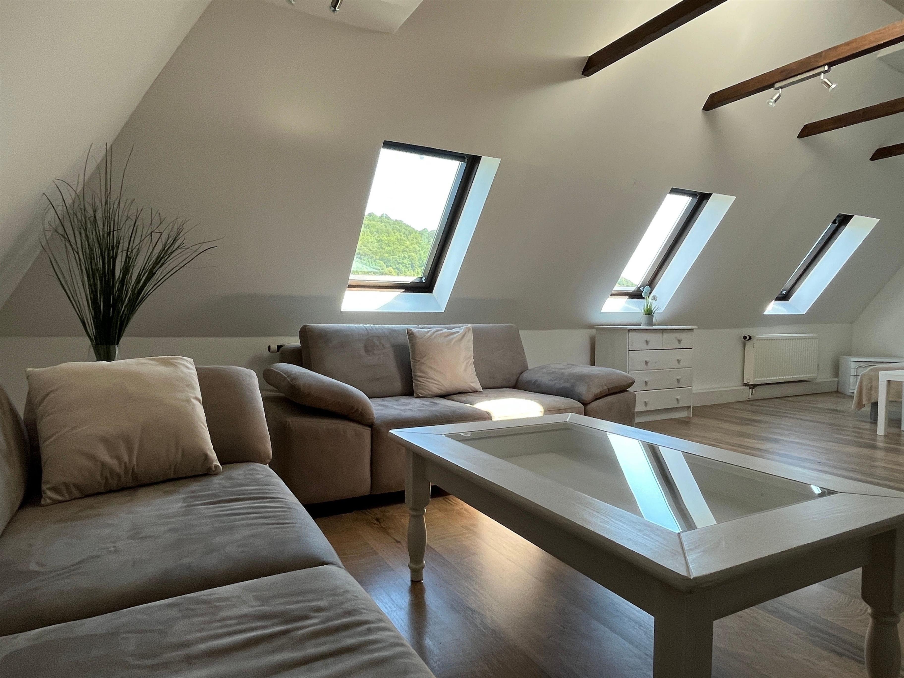 Im Obergeschoss befindet sich das Loft von 21m² mit gemütlicher Sitzecke,