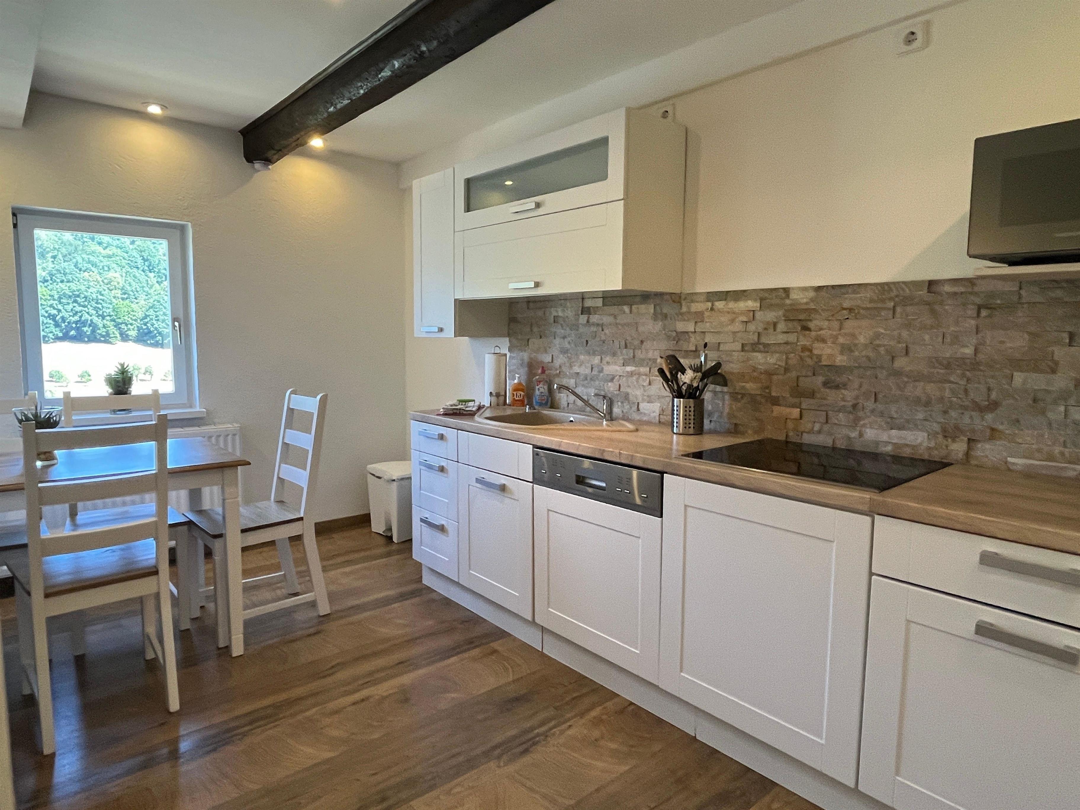 Eine Küche 11 m² mit kompletter Ausstattung wie ein Kochfeld, Spülmaschine,