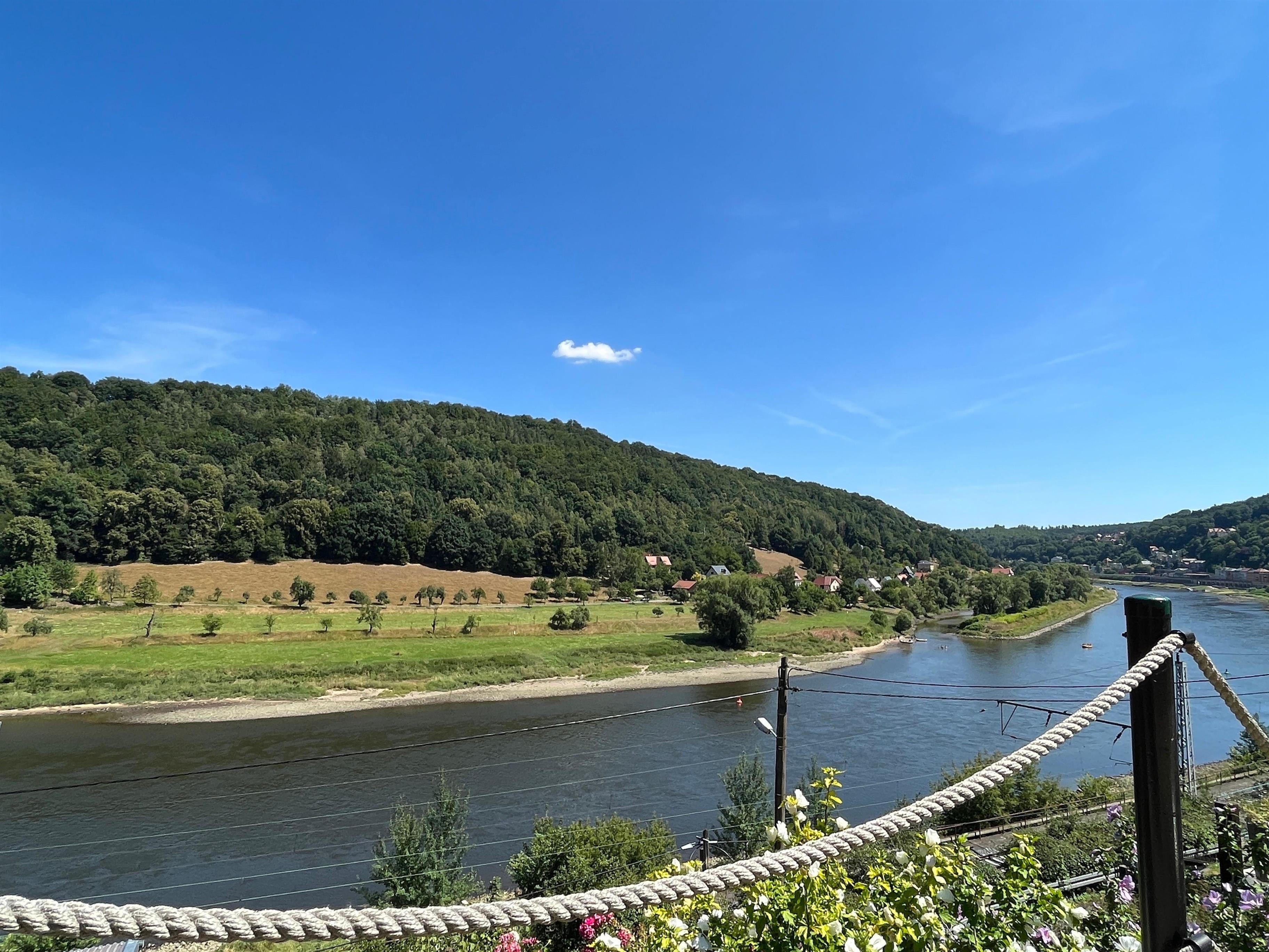 Die Lage unterhalb der Festung Königstein direkt am Elbradweg mit hervorragendem Panoramablick über das Elbtal.