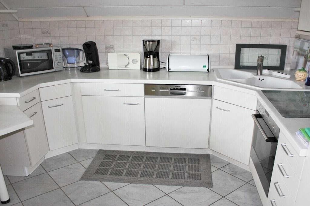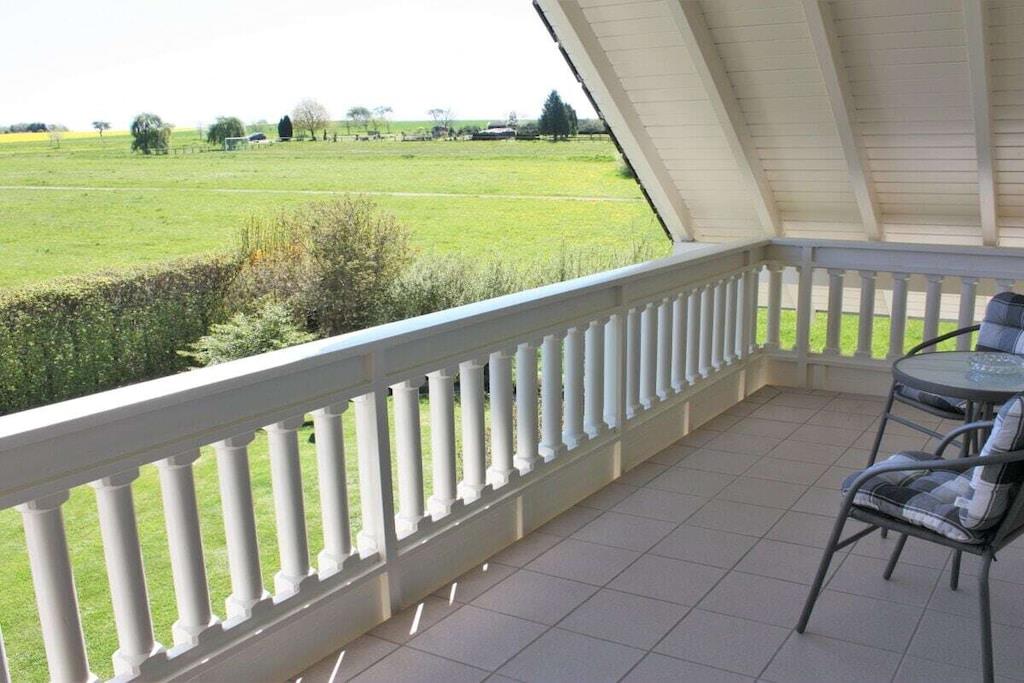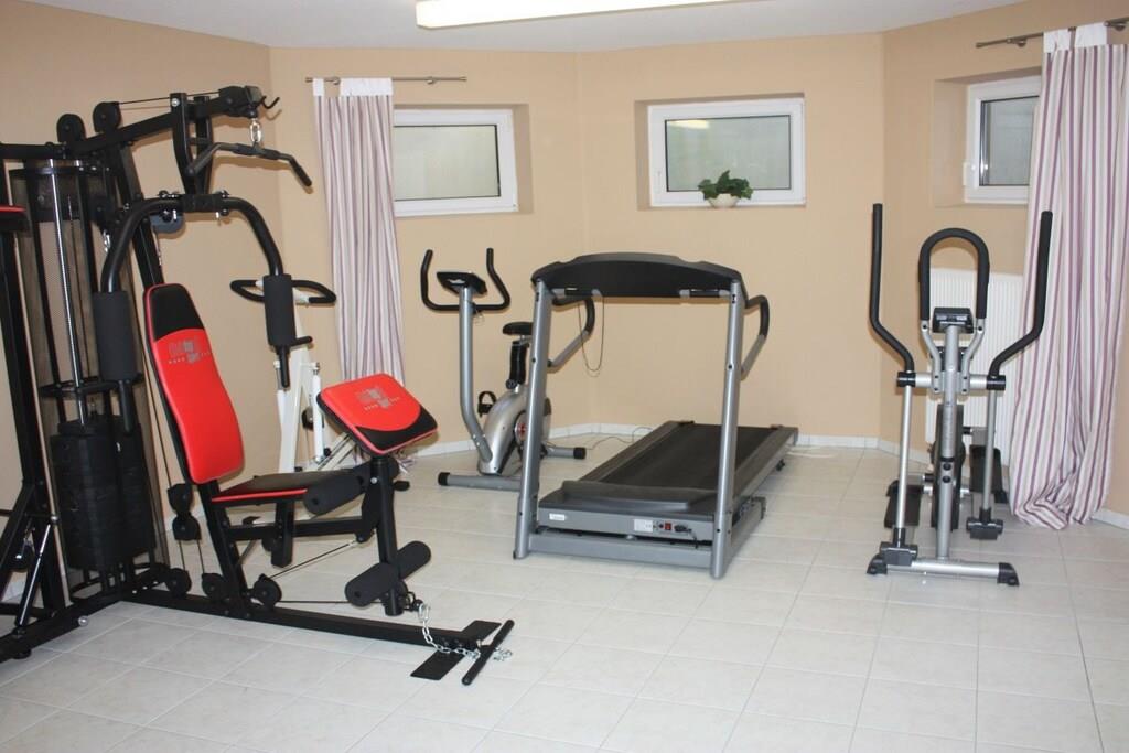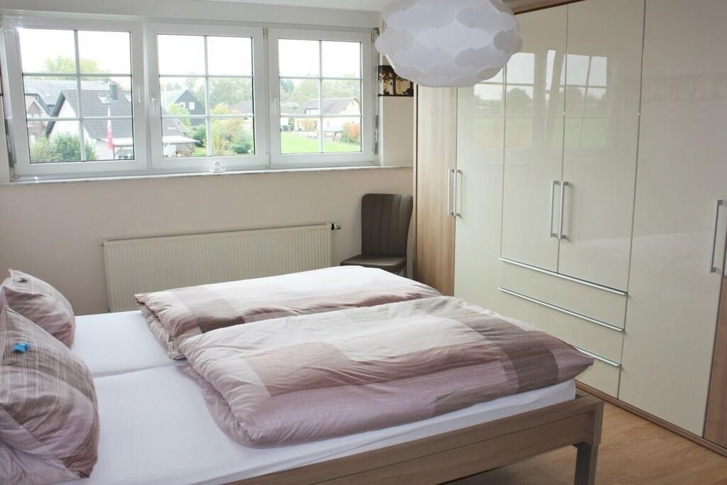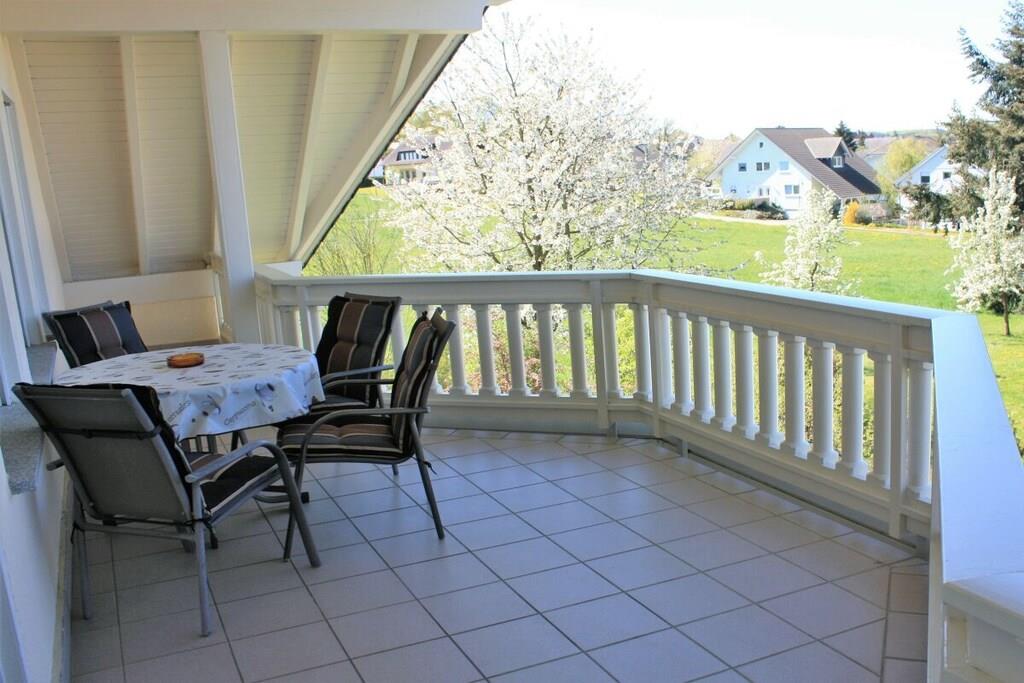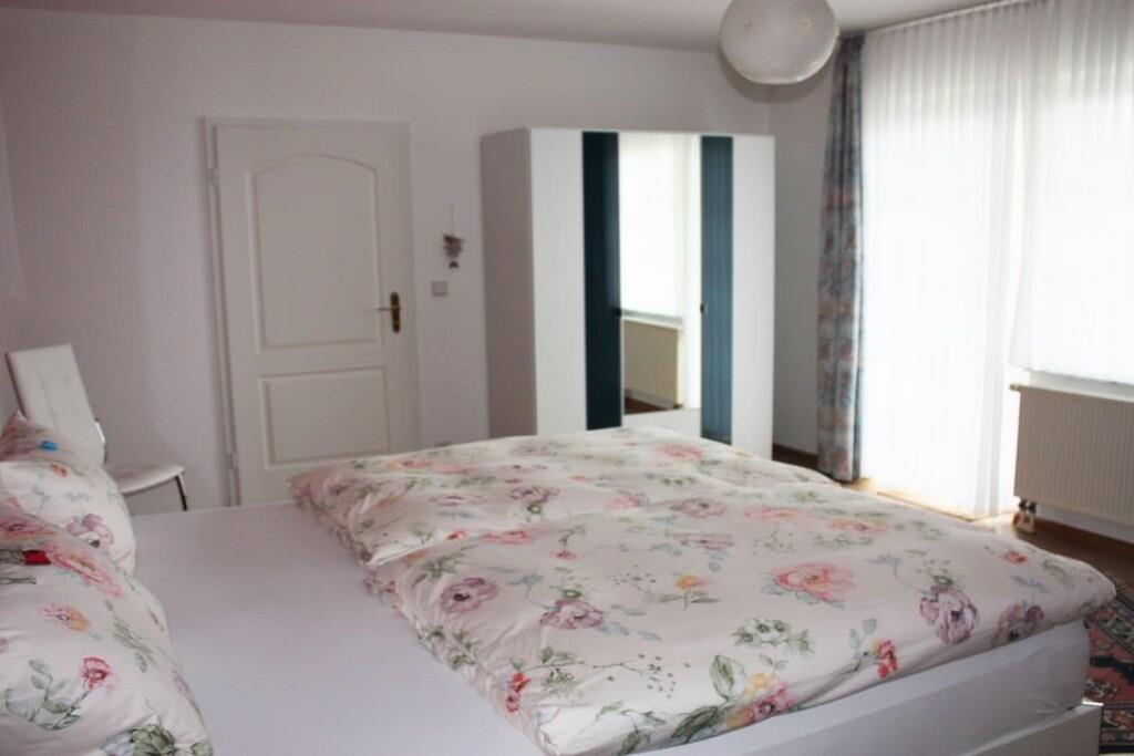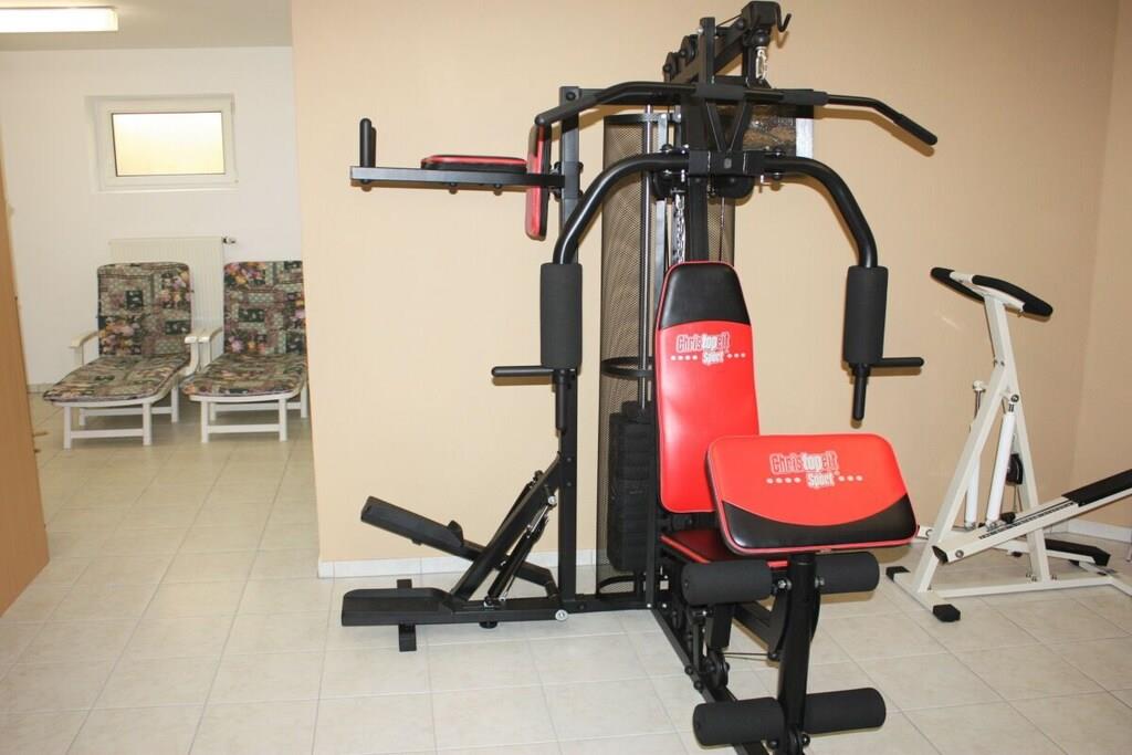 Die FeWo hat drei große Schlafzimmer, eine voll ausgestattete Küche (Mikrowelle, Geschirrspüler, Elektroherd, Kühl- u. Gefrierschank etc. mit angrenzendem Wohn-/Esszimmer (Leseecke, Schreibtisch), Kaminofen als Zusatzheizung, ein großes Bad/WC mit Dusche, Eckbadewanne, Waschmaschine sowie ein zusätzliches WC. Die Wohnung verfügt über zwei Flat/SAT/TV, einen Blue-Ray-Player, eine Stereoanlage und einen WLAN-Internetzugang. Durch die vielen Fenster ist die Wohnung lichtdurchflutet, hell und freundlich. Es ist eine Nichtraucherwohnung, rauchen ist jedoch auf beiden Balkonen möglich. Fitnessraum (Crosstrainer, Laufband, Ergometer, Stepper, Bauchtrainer, Profi-Fitnessstation) im KellerG kann genutzt werden.