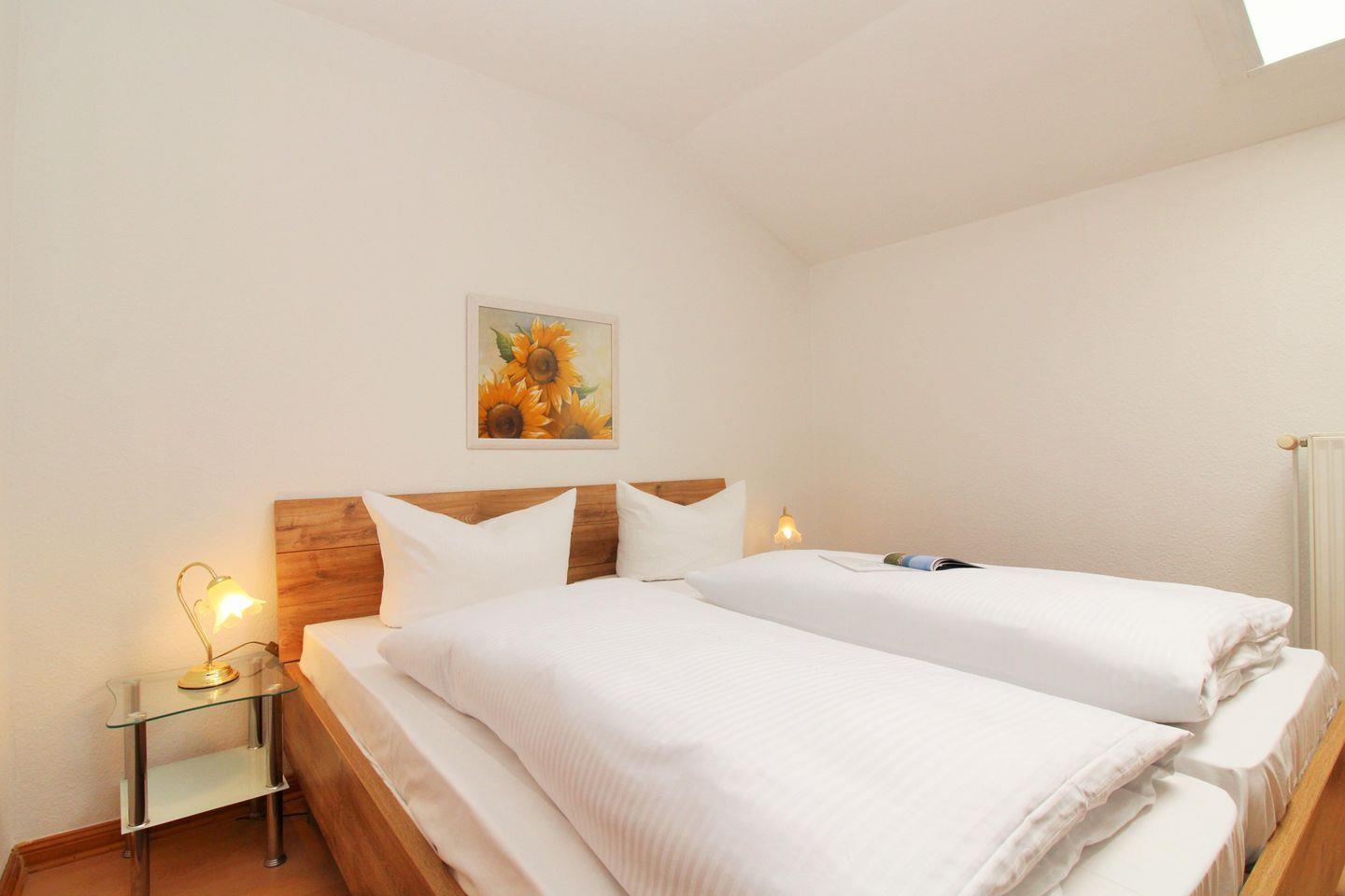 Die strandnahe und geräumige 3-Zimmer-Wohnung (ca. 68 m²) im Erdgeschoss und 1. Obergeschoss (mit innen liegender Treppe) besitzt ein hohes Maß an Funktionalität und ist komplett eingerichtet. Der Bodenbelag im Wohnbereich ist Holzlaminat, das Bad / WC sind gefliest.