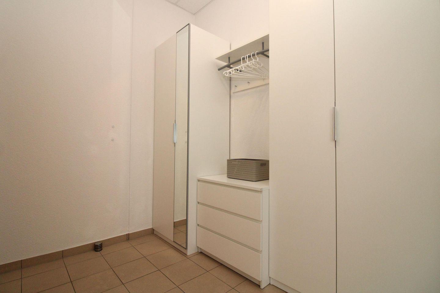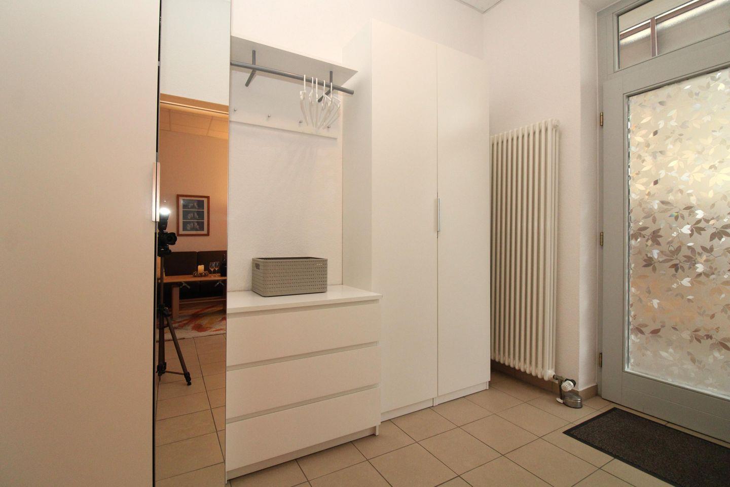 Ihre Schuhe und Jacken können Sie an der großen Garderobe (mit 2 Schränken, Kommode und Spiegel) im geräumigen Eingangsbereich der Wohnung unterbringen.