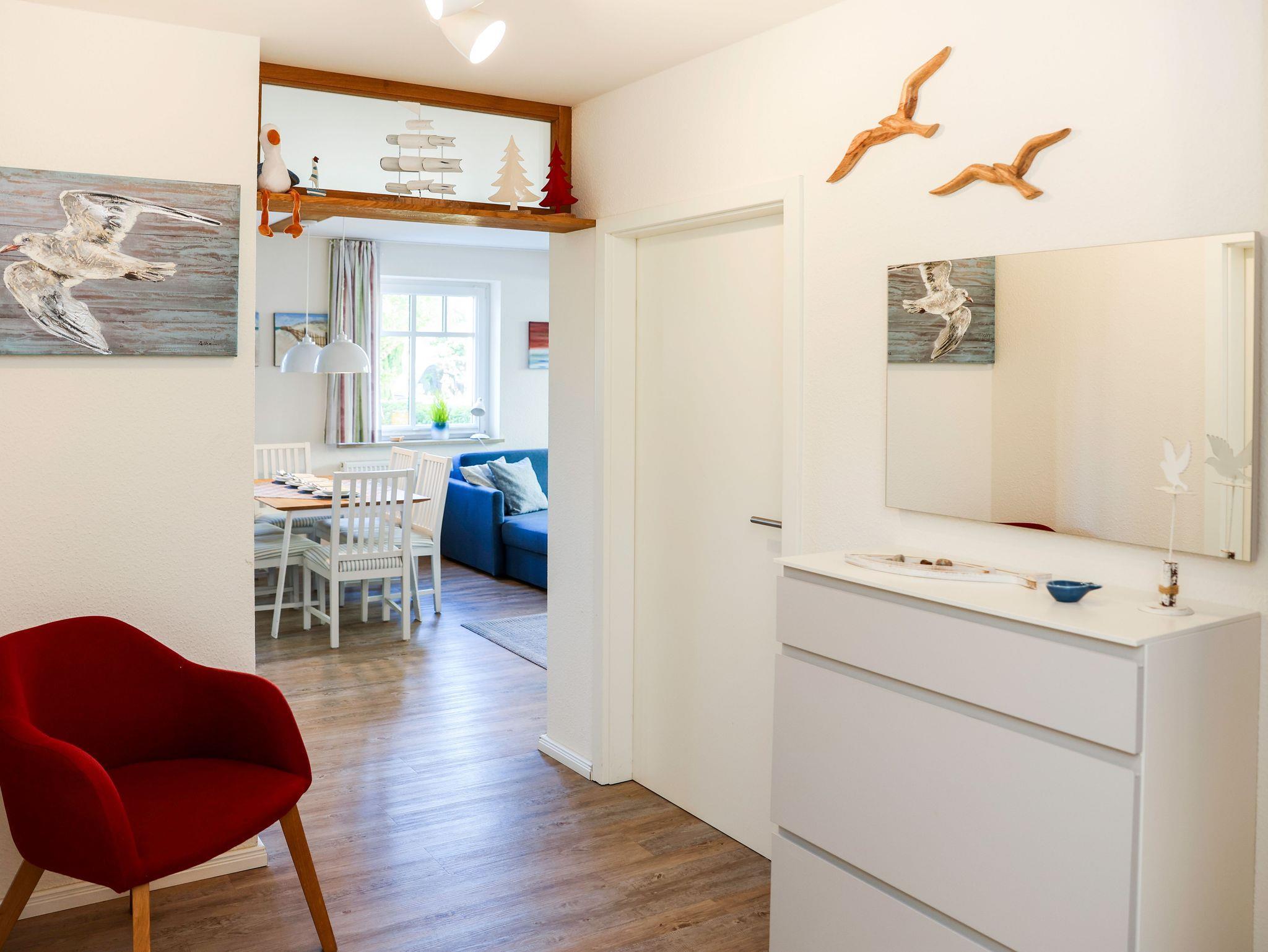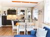 Dieses geräumige 2-Raum-Ferienwohnung strahlt einen ganz besonderen Charme aus. Die Küchenzeile ist mit hochwertigen Geräten wie, Geschirrspüler, E-Herd mit Backofen, Kühlschrank, Mikrowelle, Kaffeemaschine und div. Geschirr ausgestattet. Das Bad mit ebenerdiger Dusche und WC ist geschmackvoll eingerichtet. Die Terasse zur Nordseite komplettiert den hervorragenden Gesamteindruck der Wohnung.