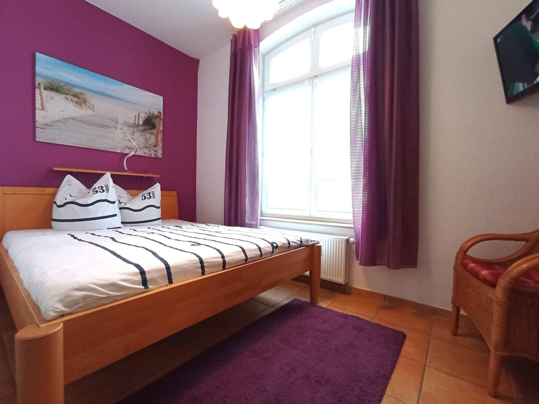 - 1. Schlafzimmer mit Doppelbett, Kleiderschrank und TV