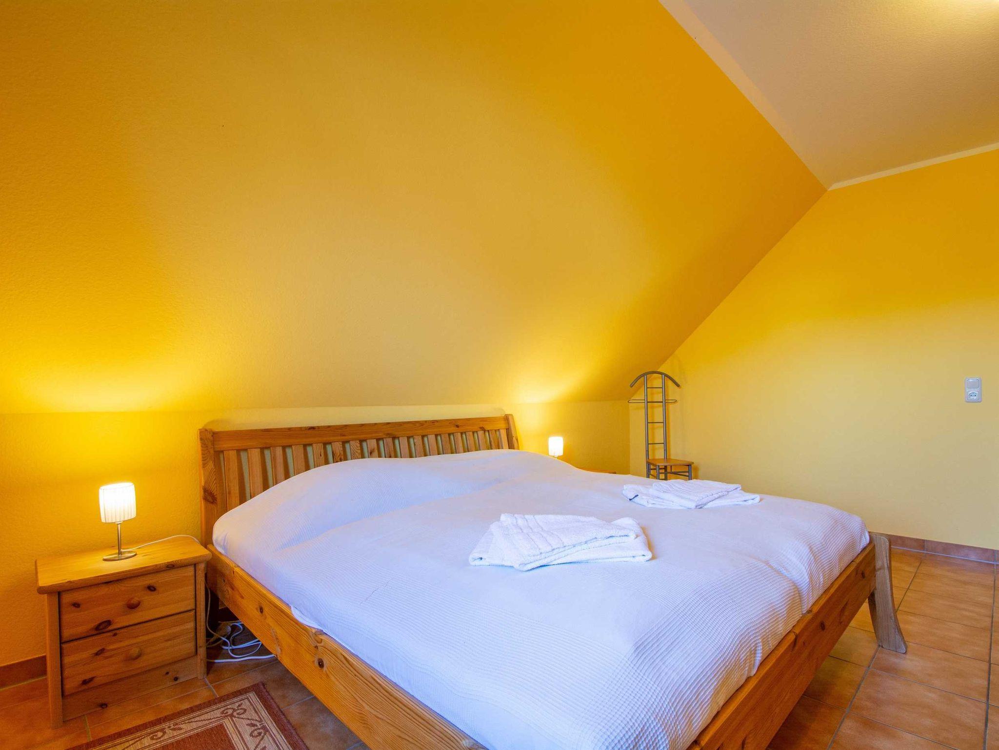 Ebenfalls auf der unteren Etage befinden sich das erste Schlafzimmer und das Wannenbad. Im Schlafzimmer lädt Sie ein komfortables Doppelbett (2 x 90 x 200 cm) zur Nachtruhe ein. Der großzügige Kleiderschrank bietet genügend Platz für Ihre Urlaubsgarderobe. Als Sichtschutz bzw. zum Verdunkeln sind im Schlafzimmer Außenrollos an den Fenstern angebracht. Im ersten Obergeschoss befinden sich zwei weitere Schlafzimmer. Eines ist ebenfalls mit einem Massivholzbett (2 x 90 x 200 cm) und einem Kleiderschrank sowie Außenrollos eingerichtet, das andere Schlafzimmer verfügt über ein Multifunktions- bzw. Tandembett (2 x 90 cm x 200 cm). Es ist mit Plissees versehen.
