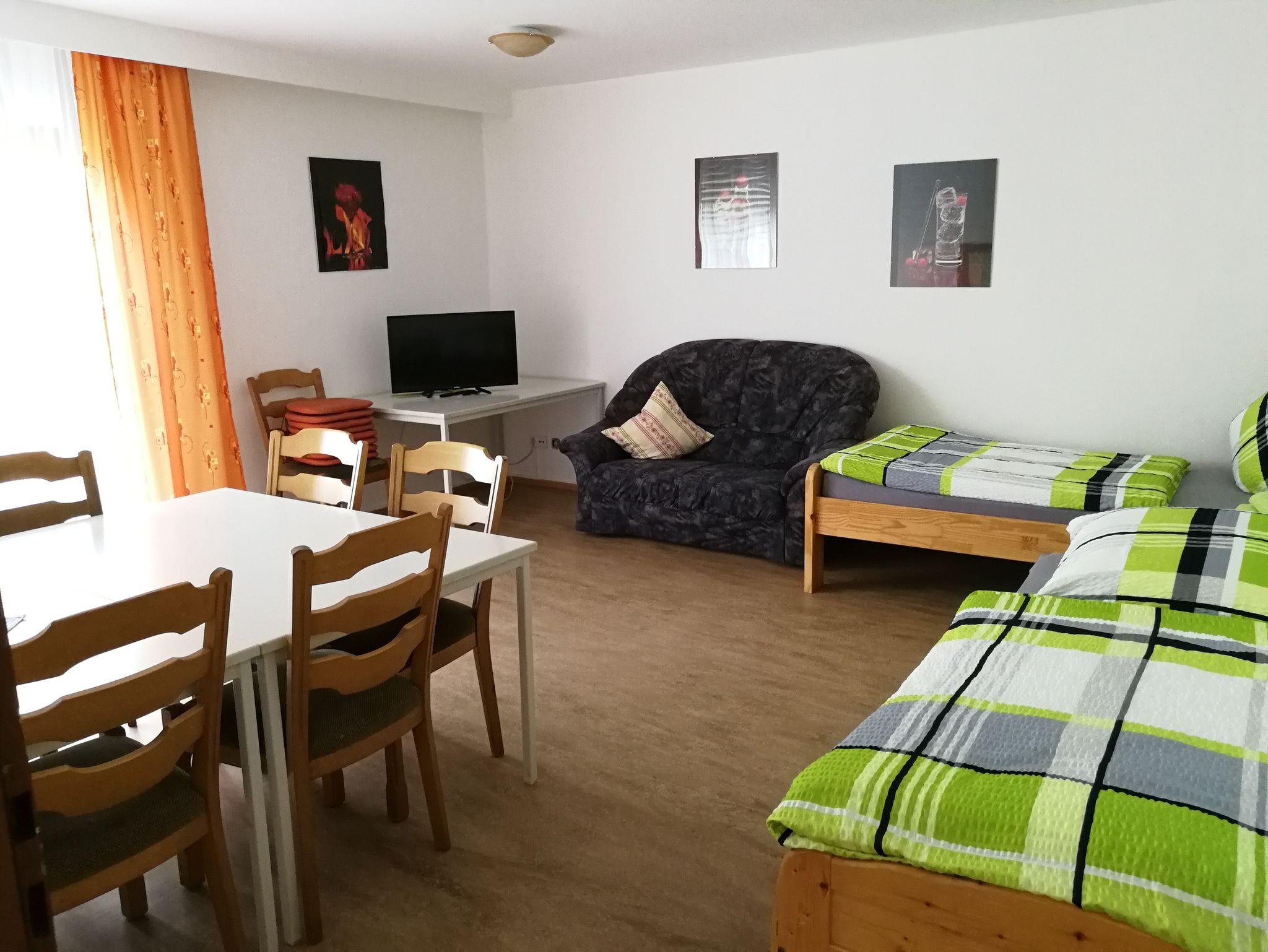 Die große Ferienwohnung für Monteure bietet Platz für 2-6 Personen und liegt auf dem Winzerhof Spengler in Kühlsheim. Das Apartment bietet 2 Schlafzimmer, eine Wohnküche mit Sat-TV und Radio und Schlafsofa sowie Essbereich und Küchenzeile mit Wasserkocher, Backofen und Toaster. Des Weiteren gibt es ein Bad mit Dusche und WC sowie eine Terrasse. Auch WLAN und Parkplatz sind bereits im Preis enthalten. Auf Anfrage bieten wir Ihnen auch einen Einkaufsservice an. Im Frühjahr und Herbst ist unsere Besenwirtschaft jeweils für 8 Wochen geöffnet. Es gibt auch eine Liegewiese, einen Grillplatz neben Spielplatz/wiese, einen Aufenthaltsraum, einen Brötchenservice und Frühstück, welches auf Wunsch möglich ist. Außerdem bieten wir ganzjährig Flaschenweinverkauf aus eigener Produktion. Wir freuen uns auf Ihren Besuch.