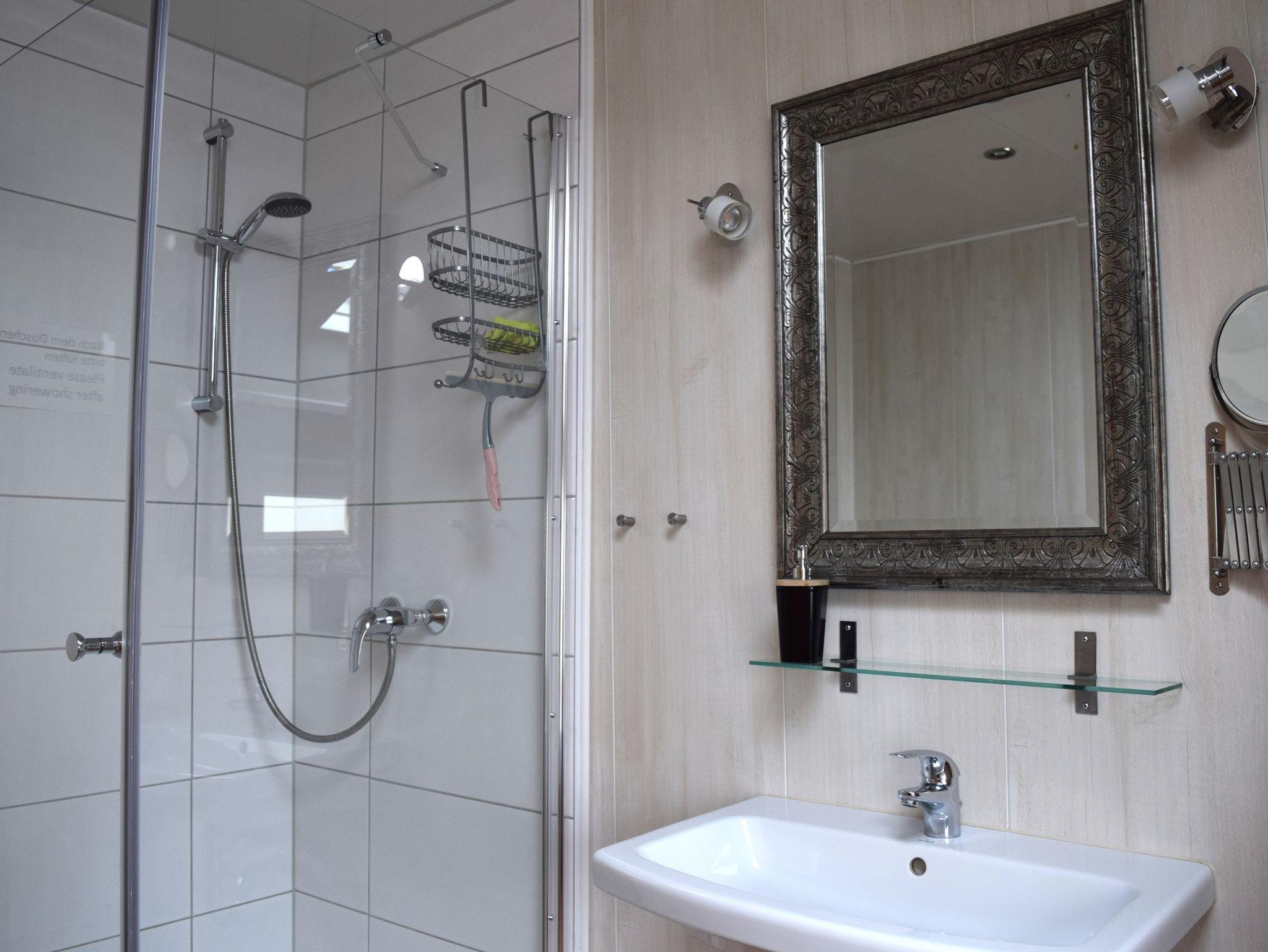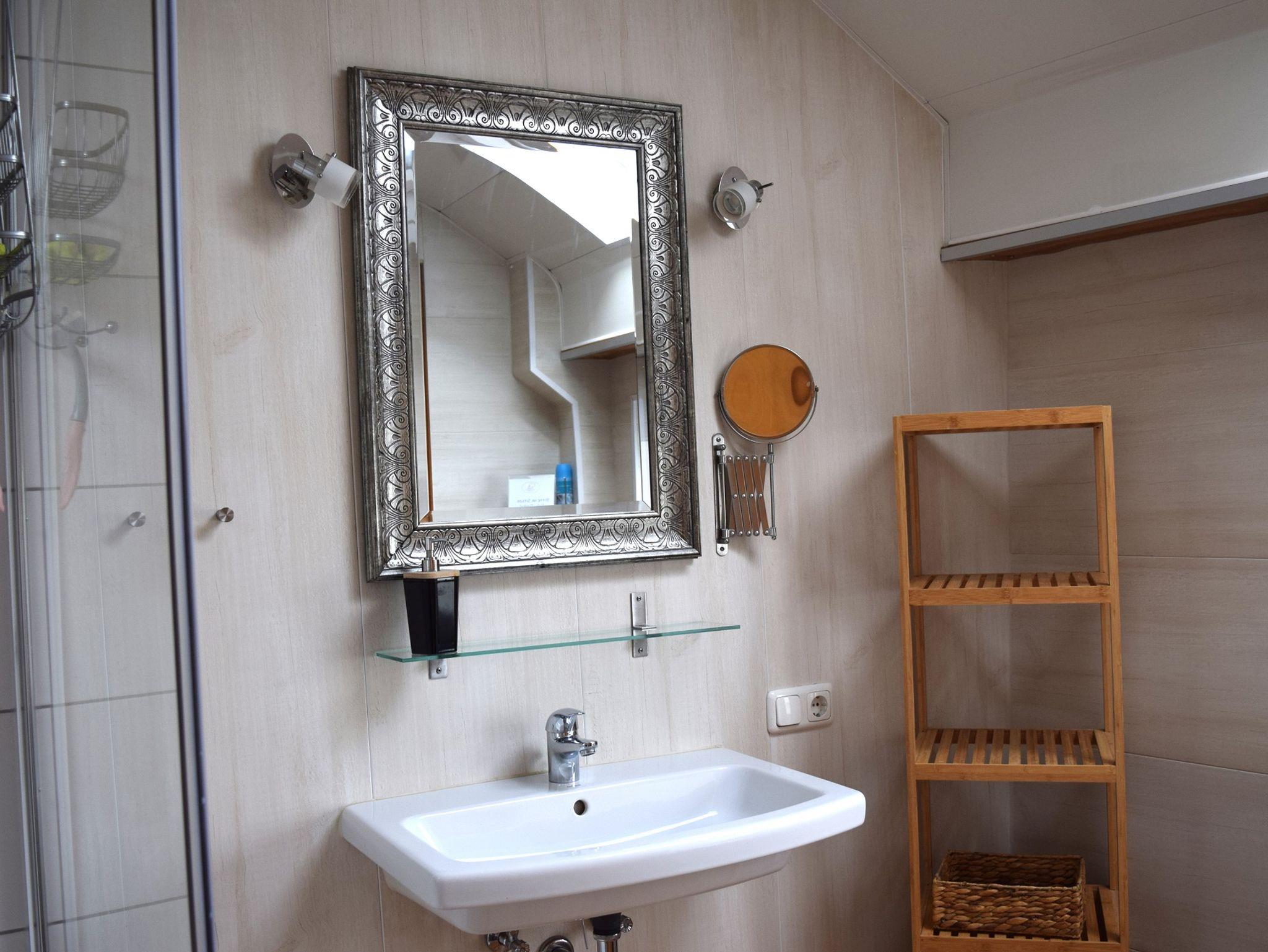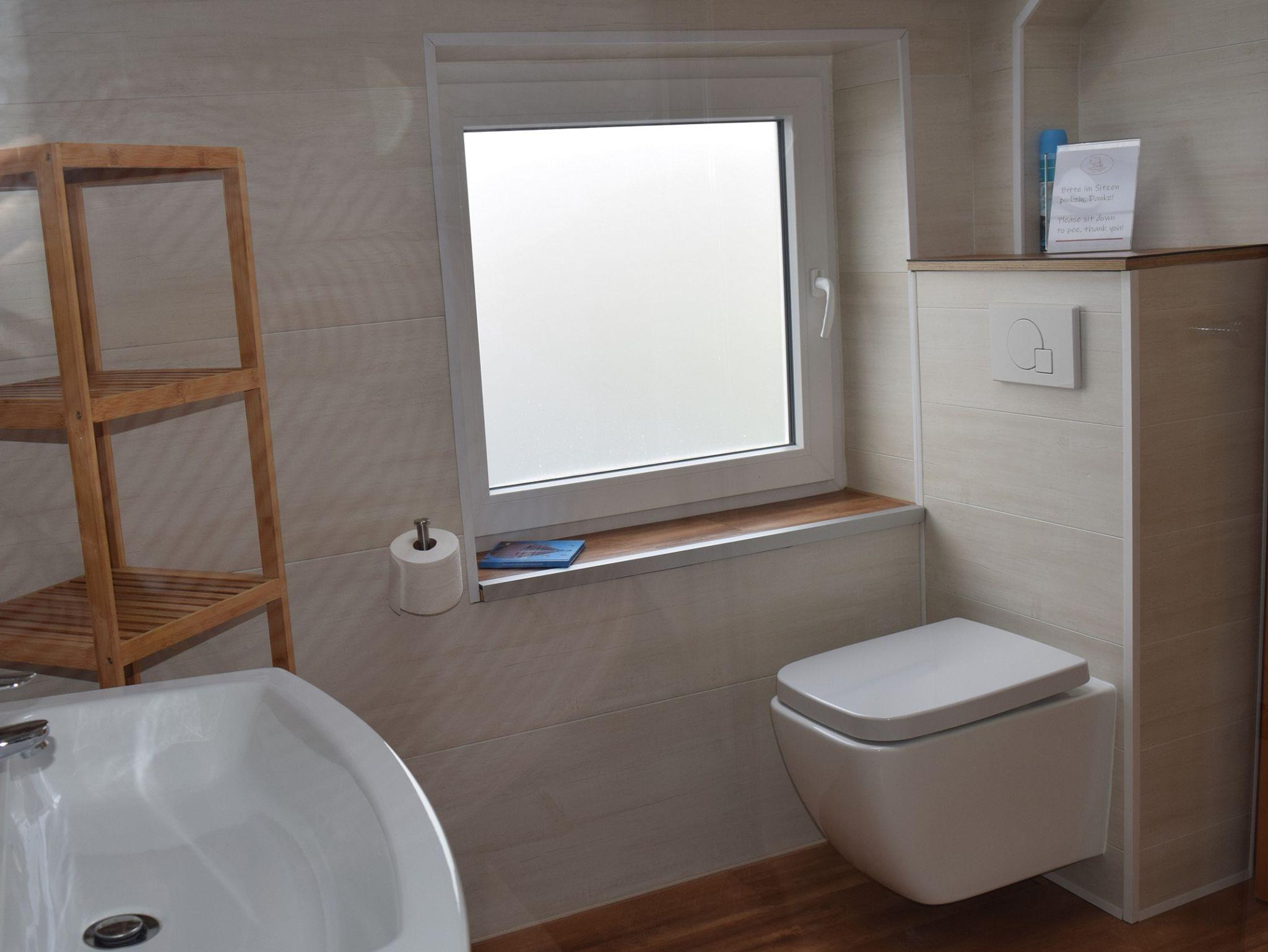 Im Bad befindet sich neben dem Waschbecken, ein Regale zur Ablage, die Dusche und das WC. Durch das Fenster im Bad ist es sehr hell. Hand- und Badetücher liegen im Bad für Sie bereit.