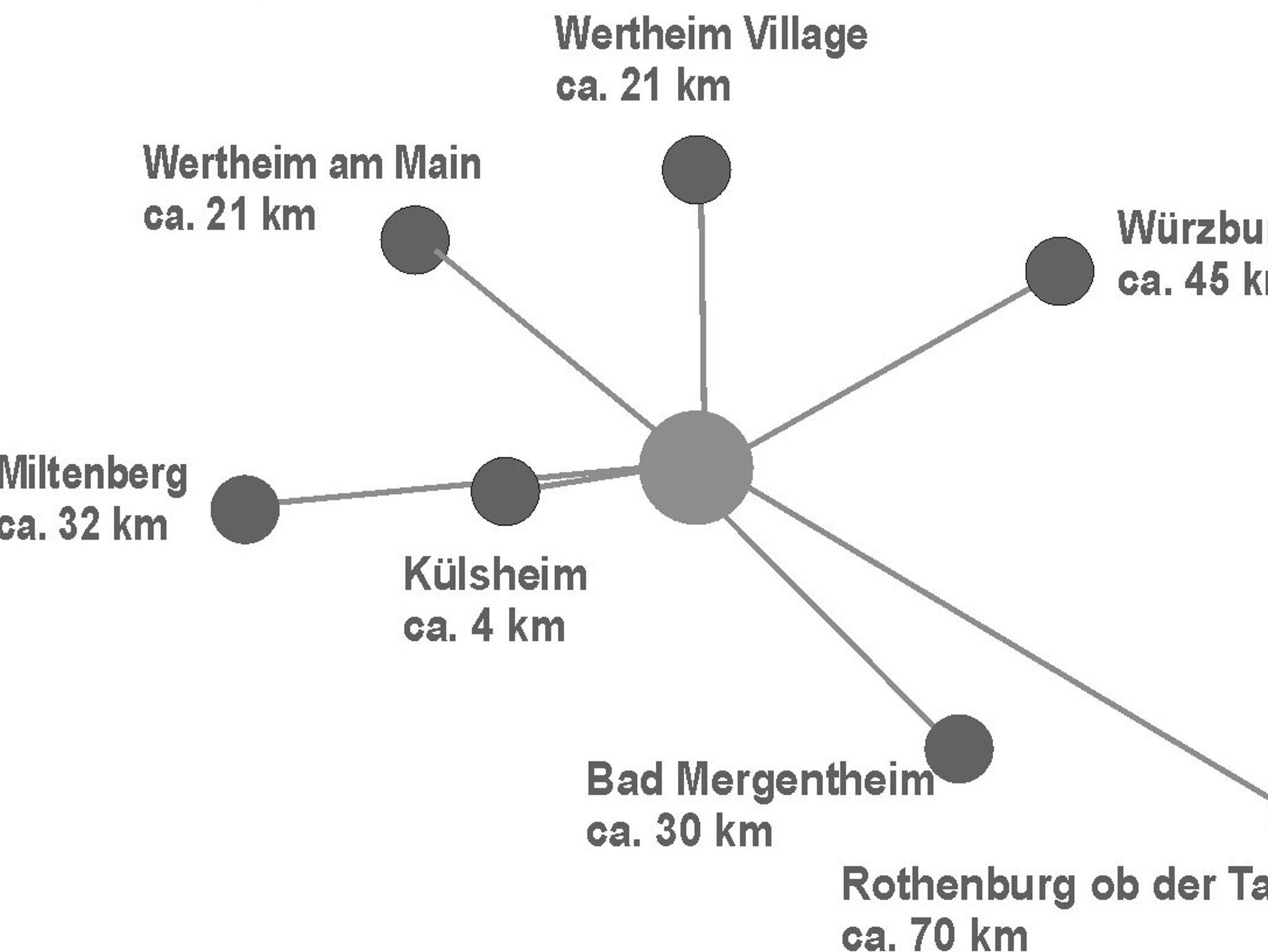 Unser Dorf mit Herz liegt auf den Höhen des lieblichen Taubertals. Ob wandern auf Wanderwegen durch idyllische Landschaften und Wälder oder sportlich aktiv auf unseren Mountianbike Strecken, Bewegung, Erholung und Genuss liegt nah. Das romantische Städtchen Wertheim ist ein Besuch wert (21km),ausspannen in der Solymar Therme oder ein Besuch im Wildpark, beides in Bad Mergentheim (30km), zur Shoppingtour lädt das Wertheim Village ein. (21km).
