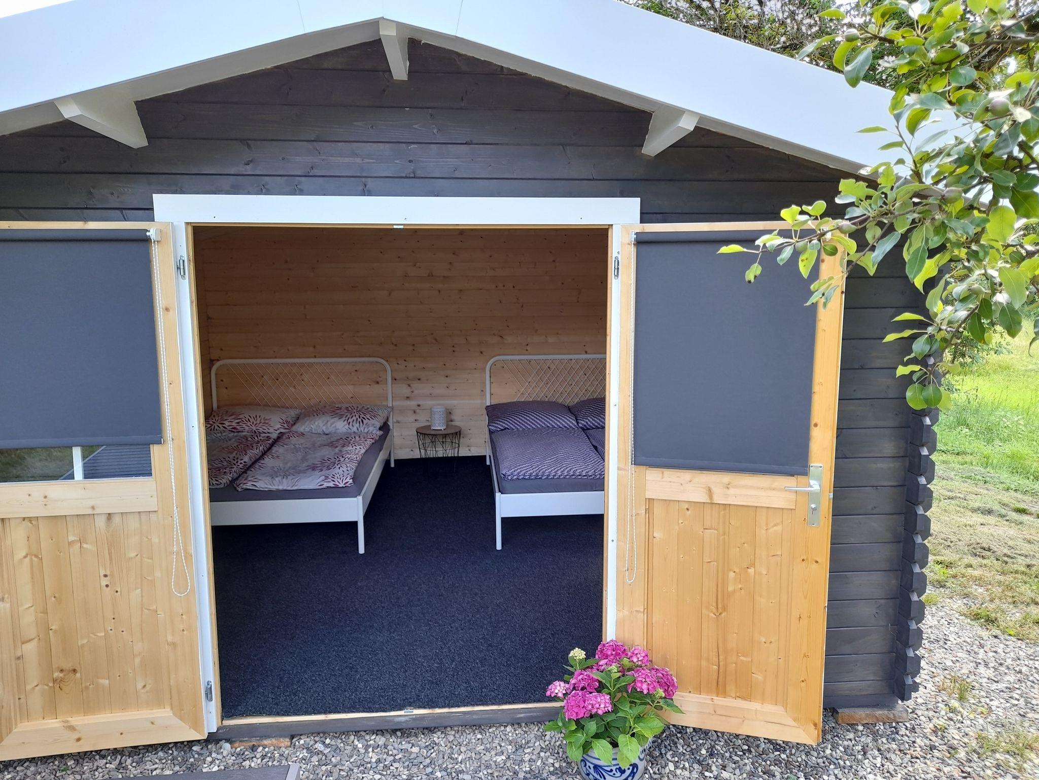 Unsere Campinghütte Leonie verfügt über 2 Betten je 1,60 x 2,00. In dieser 16 qm großen Hütte befinden sich zwei Doppelbett je 1.60m x 2.00m, sie bietet somit Platz für bis zu 4 Personen. Ebenfalls gibt es Licht, Strom, W-LAN,Fensterrollos zum Abdunkeln, Tisch und Stühle auch im Außenbereich befindet sich ein Tisch mit Stühlen der zum Verweilen einlädt. Die Übernachtung in unserer Campinghütte beinhaltet Bettwäsche, Beleuchtung, Stromanschluss und natürlich die Nutzung unserer Sanitäreinrichtungen.