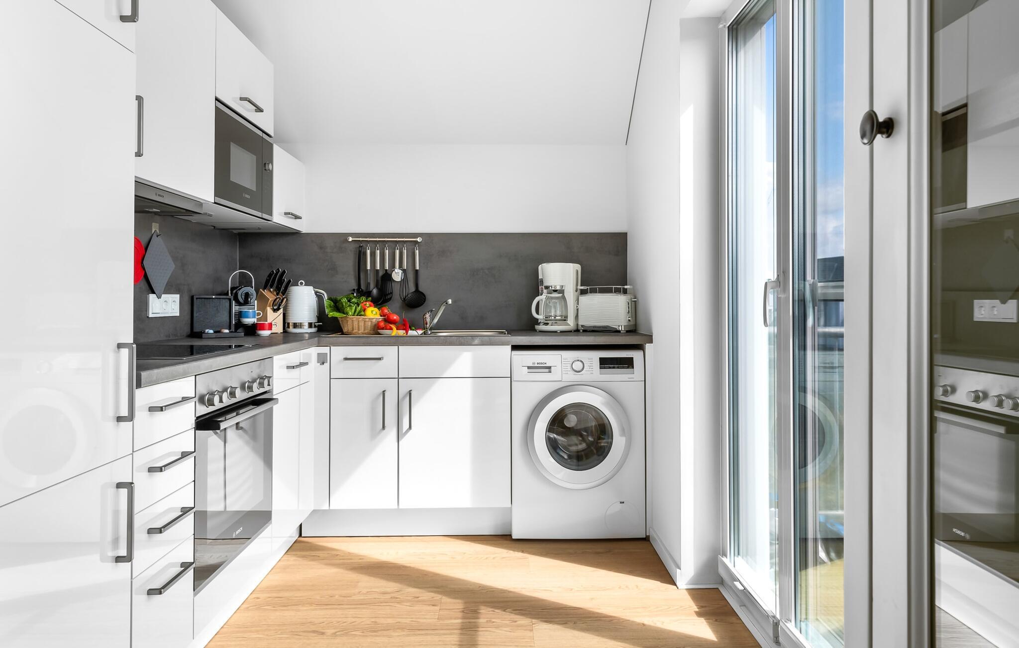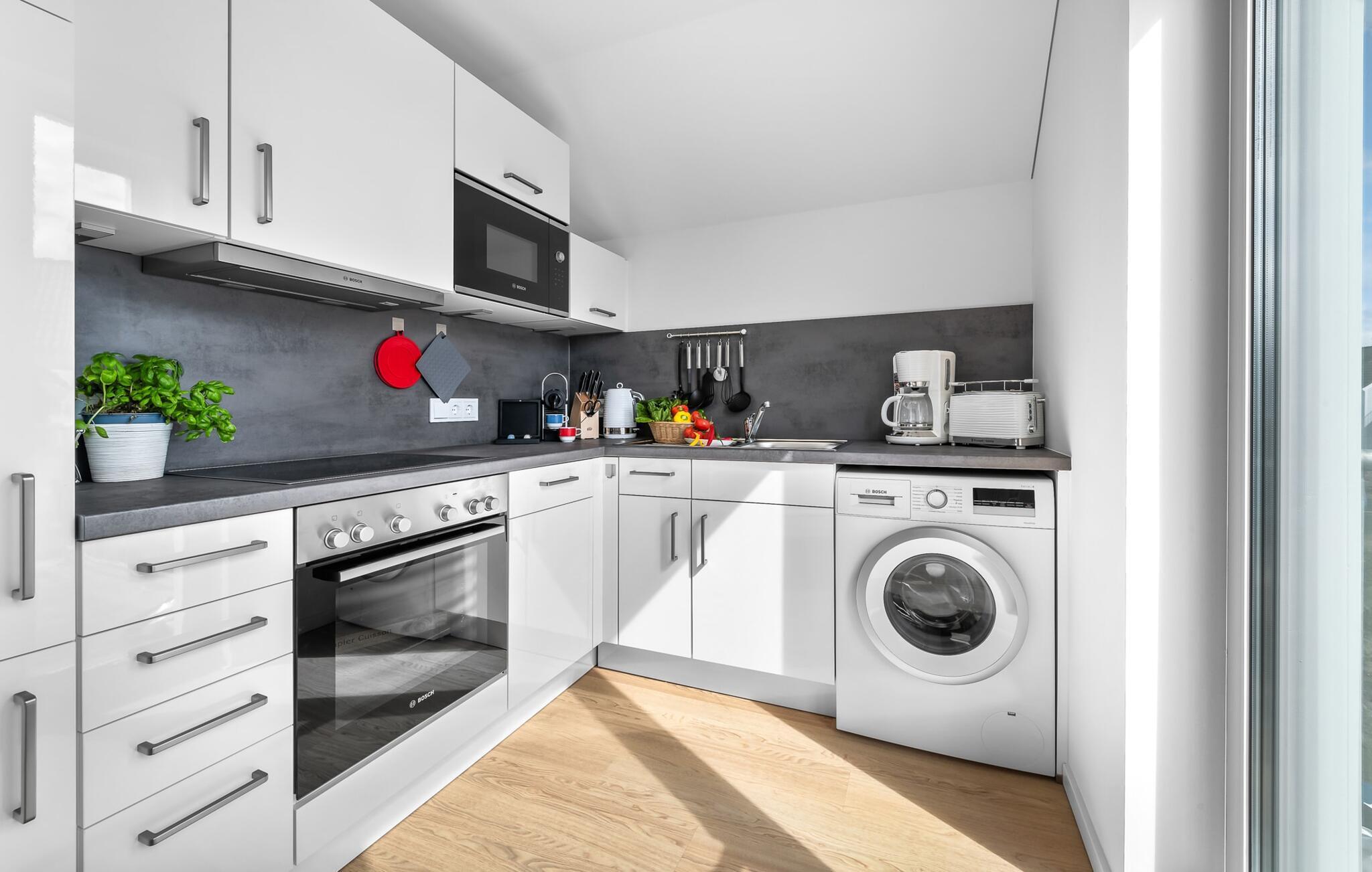 An kühleren Abenden kannst du dich am Kaminofen aufwärmen und gemütliche Stunden verbringen. Für weitere Unterhaltung steht ein Smart-TV zur Verfügung. Die voll ausgestattete Küche lädt dazu ein, köstliche Mahlzeiten zuzubereiten und gemeinsam zu genießen.