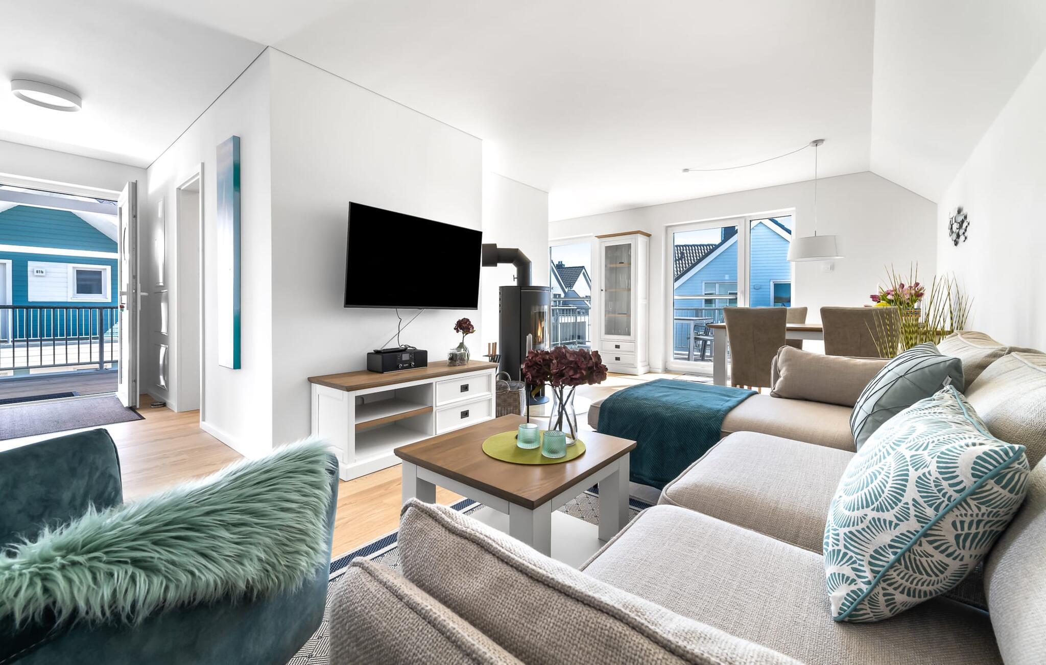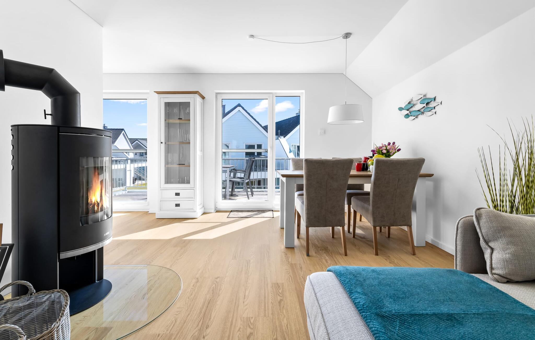 Gemütliche Ferienwohnung mit Terrasse, Kaminofen und Infrarotkabine nahe Ostsee und Hafenpromenade.