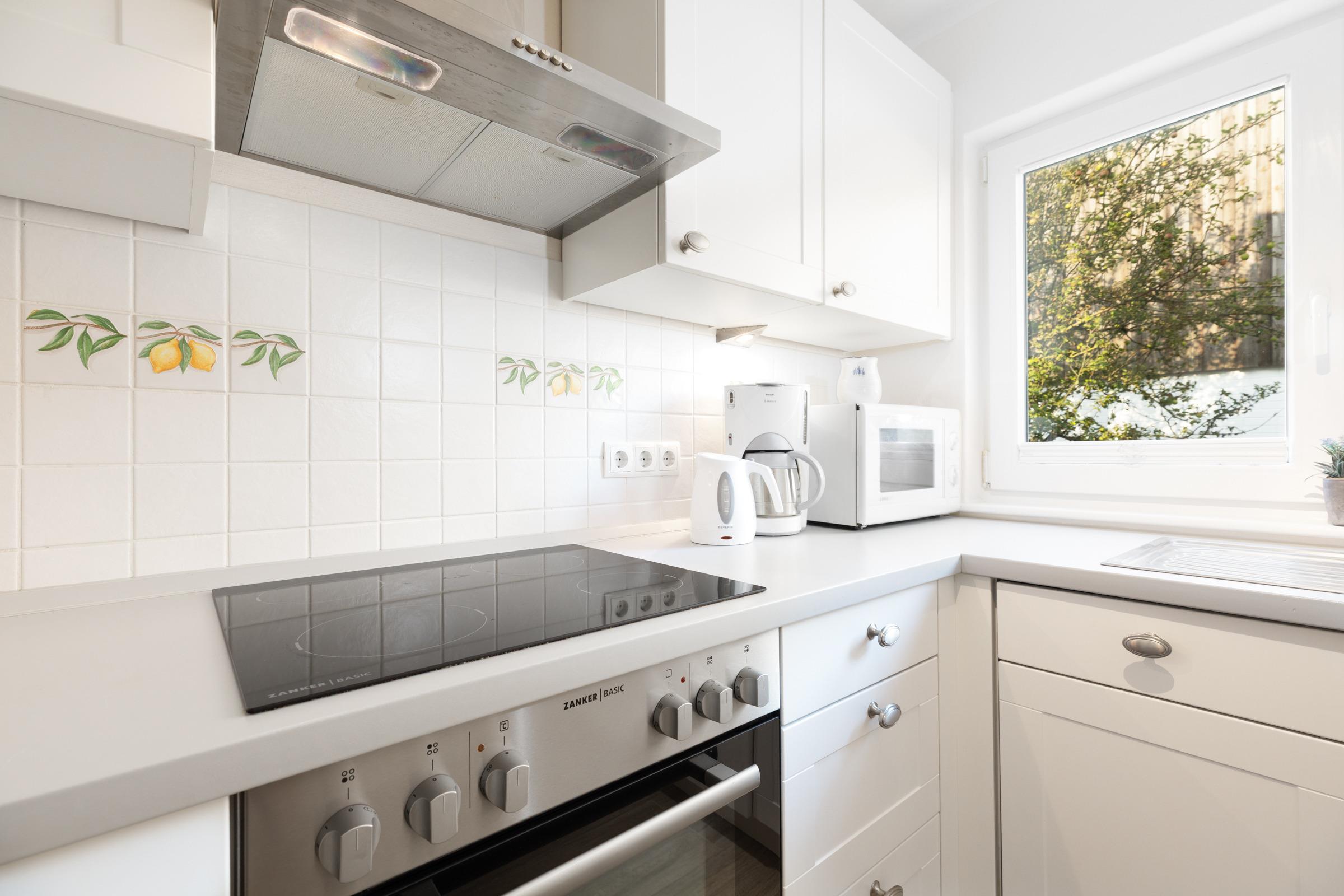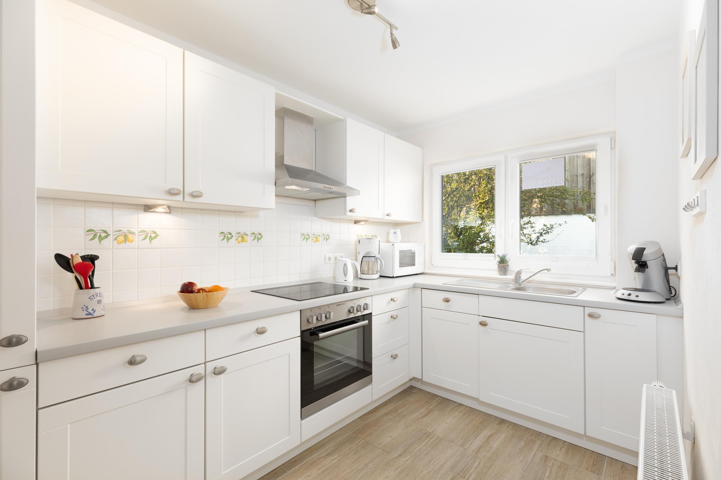 Es erwartet Sie der heimelige Wohn-/Essbereich mit Kaminofen, der auch an kühlen Tagen eine warme und gemütliche Atmosphäre entstehen lässt. Bereiten Sie Ihr Frühstück, Mittag- oder Abendessen in der gute ausgestatteten Küche zu und genießen Ihre Mahlzeiten bei schönem Wetter auf der sonnigen Terrasse.