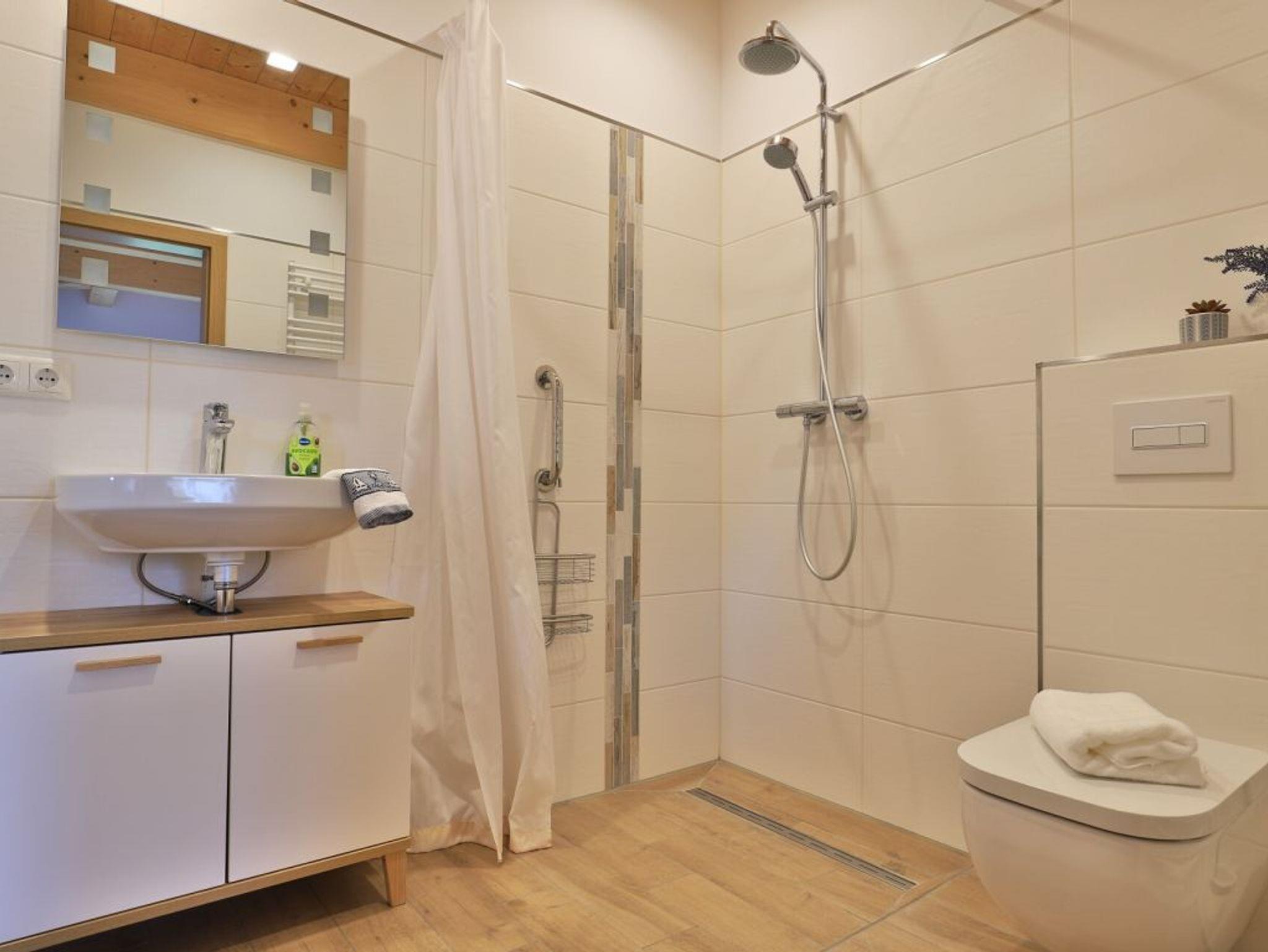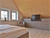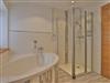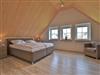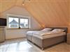 Eine Treppe führt in das Obergeschoss, wo sich zwei weitere Schlafzimmer mit zwei eigenen Bädern befinden. Eines der Schlafbereiche besitzt ein Doppelbett, Fernseher, Duschbad mit Waschtisch, WC. Das weitere, sehr geräumige Familienschlafzimmer bietet ein Doppelbett, ein Schlafsofa ideal für Kinder (160cm x 200cm) und ist zudem mit einem modernen Tageslicht Badezimmer mit Eckbadewanne, Dusche, Waschtisch und WC ausgestattet.