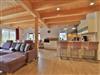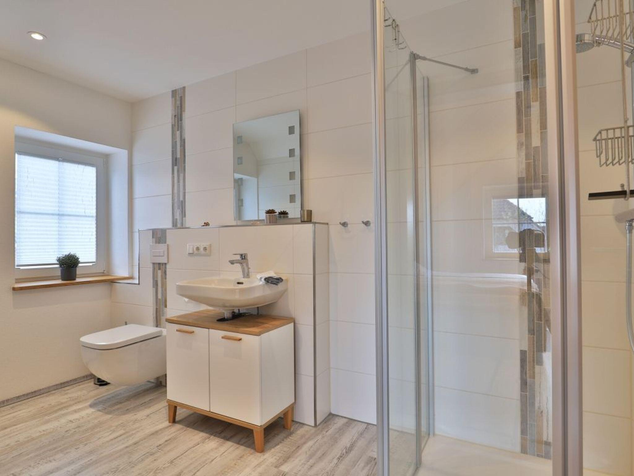 Die Möblierung im Erdgeschossbereich ist stilvoll. Eine Sofalandschaft lädt zur Auszeit am wohligen Kaminofen ein. Fernseher, Musikanlage und auch kostenfreie WLAN-Nutzung sind vorhanden. Vom Wohnbereich gelangen Sie eine saisonal möblierte Terrasse in süd-/westliche Ausrichtung. Der große Garten ist ideal für Kinder und bietet zudem eine Grillmöglichkeit. Die offene Küche ist in den Wohnbereich integriert und verfügt über ein Induktionskochfeld, Backofen, Mikrowelle, Kühlschrank, Gefrierschrank, Kaffeemaschine, Toaster, Wasserkocher, Geschirrspüler u.v.m. Ihre zubereiteten Mahlzeiten nehmen Sie an einem großen Esstisch zu sich. Bei schönem Wetter, bestimmt auch gerne auf der Terrasse mit Blick in den Garten. Eines der separaten Komfort- Schlafzimmer befindet sich auf der Wohnebene. Dieses Schlafzimmer ist mit einem Doppelbett, TV und einem eigenen Bad mit ebenerdiger Dusche ausgestattet. Auch ein Hauswirtschaftsraum mit kostenfreier Waschmaschine & Wäschetrocknernutzung sowie ein Gäste-WC sind im Erdgeschoss vorhanden.