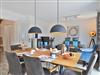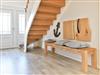 Es empfängt Sie ein stilvoll möblierter Wohn-Essbereich mit einem Komfort Sofa, einem Relax Sessel mit Beinablage, Kaminofen sowie einem massiven Esstisch, von dem aus Sie den Blick in den hauseigenen Garten genießen können. Für Wellnessfreunde steht im Garten eine Fasssauna gegen Gebühr bereit.