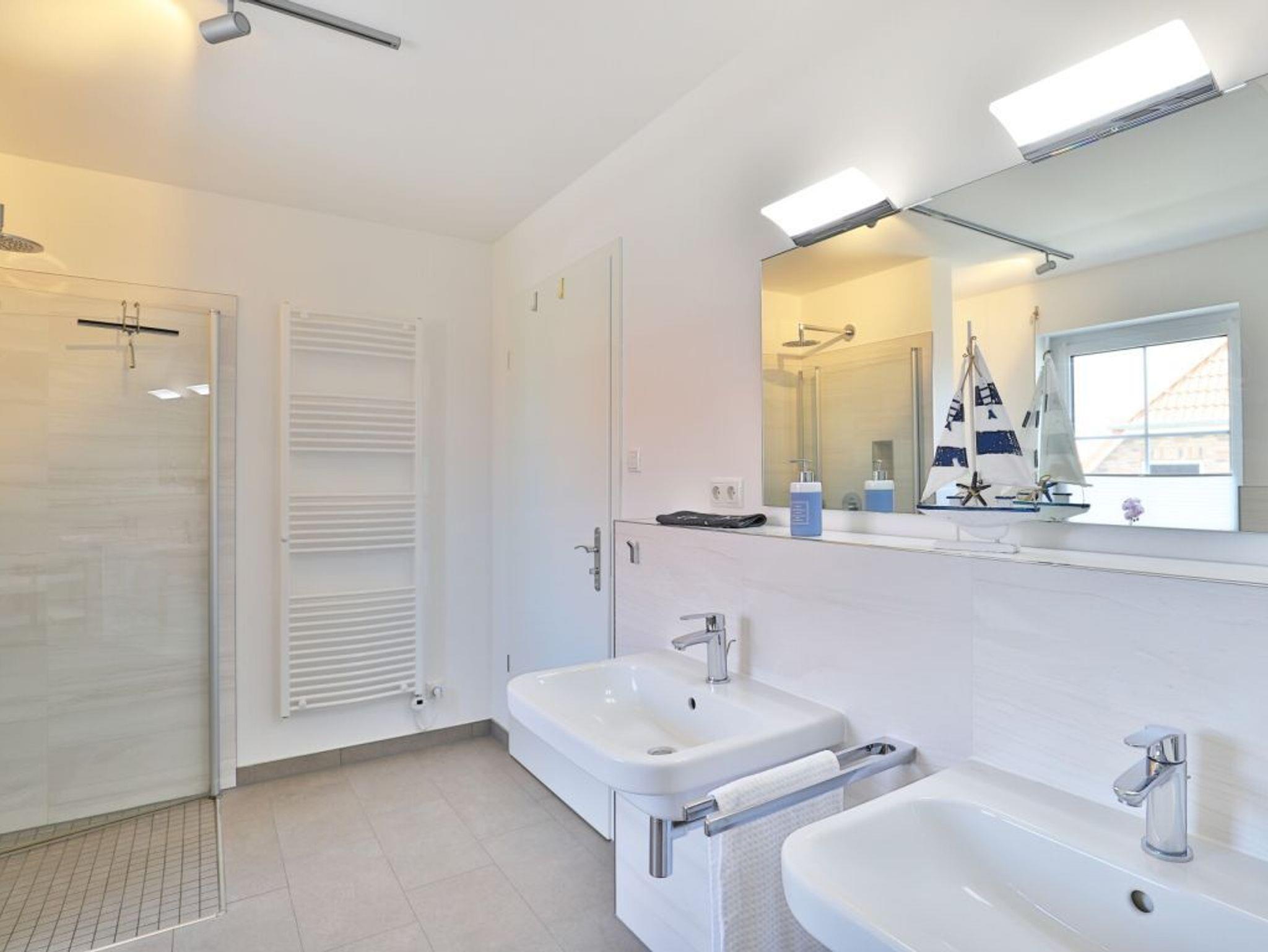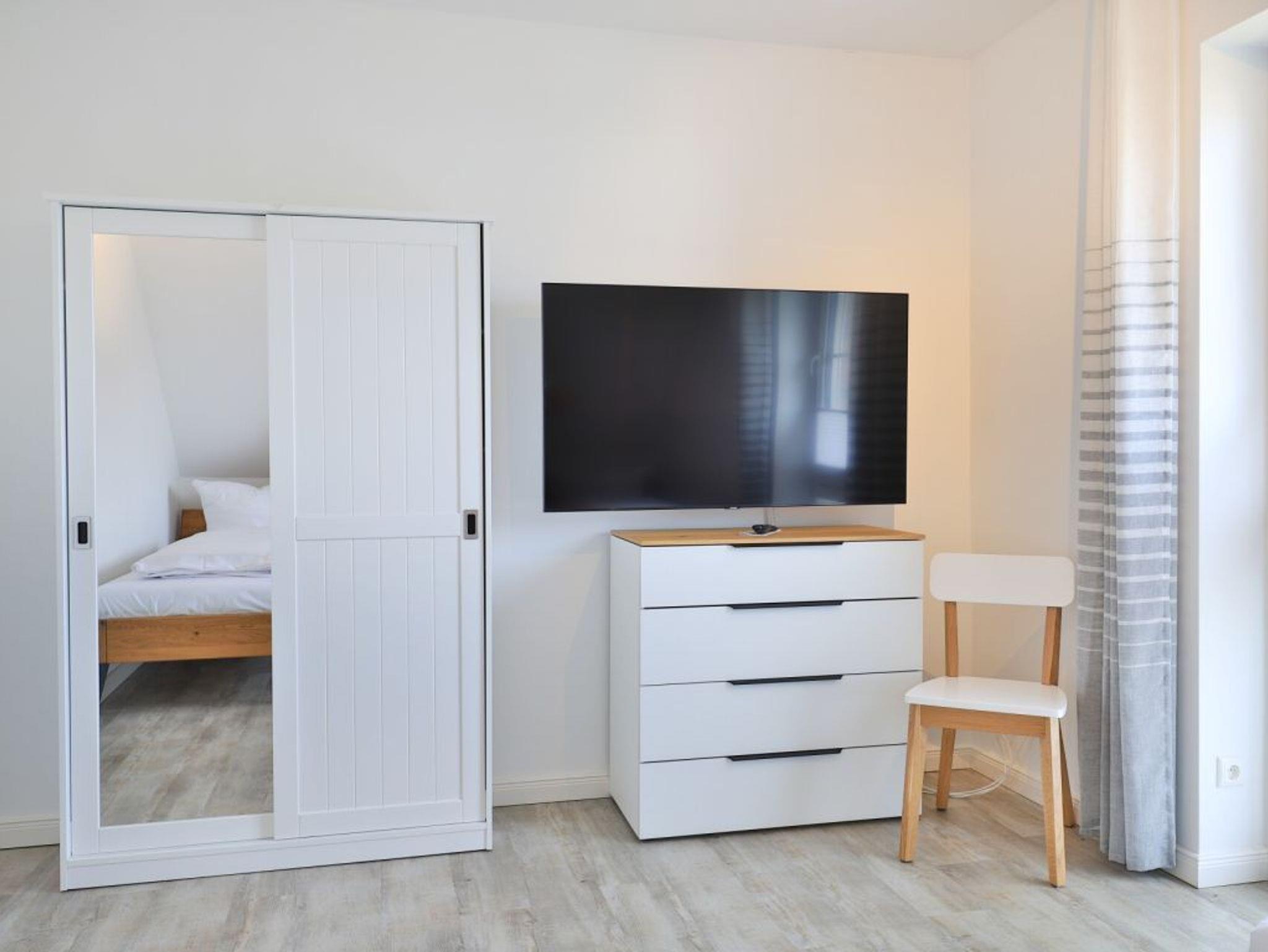 Das Domizil bietet Unterhaltungselektronik mit insgesamt vier Fernsehgeräten und einer Musikanlage. Selbstverständlich ist die Internetnutzung über WLAN gebührenfrei. Zudem befinden sich im Erdgeschoss ein separates, komfortables Schlafzimmer mit Doppelbett, Kleiderschrank, Kommode und Fernsehgerät sowie ein sehr geräumiges, ebenerdiges Tageslicht Duschbad.