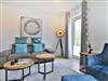 Die in den Wohnbereich integrierte, durch einen Tresen getrennte, Küchenzeile ist modern und mit Herd, Backofen, Mikrowelle, Dunstabzug, Kühlschrank mit Gefrierfach, Geschirrspüler, Kaffeemaschine, Toaster, Wasserkocher u.v.m. bestens ausgestattet.