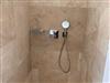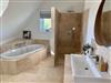 Dusche, Badewanne und Travertinsteinplatten sorgen für ein mediterranes
