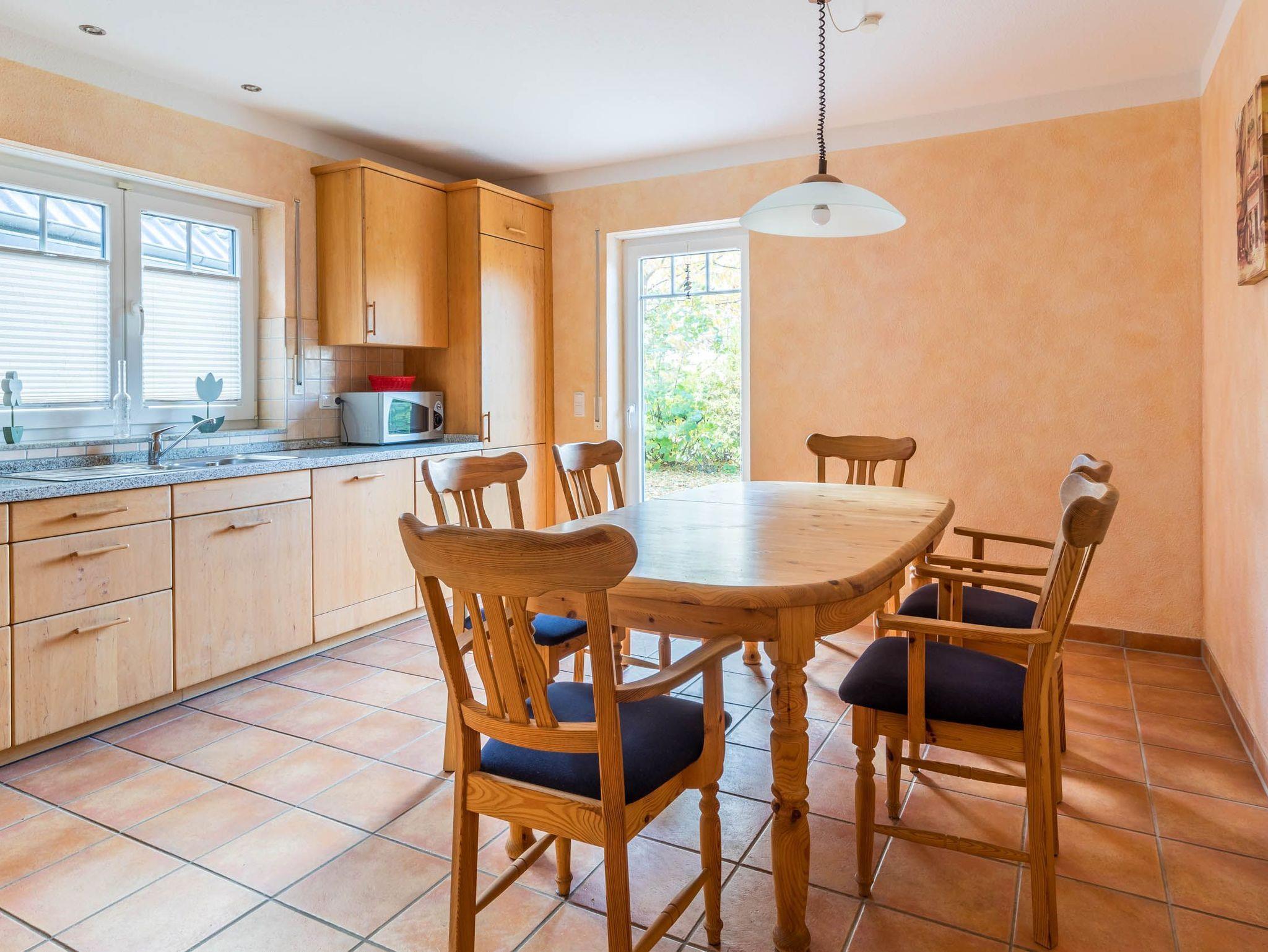Die separate Küche aus echtem Holz bietet eine gehobene Küchenausstattung und umfasst einen Herd mit Backofen, einen Kühlschrank mit Gefrierfach, eine Spülmaschine, eine Mikrowelle, einen Mixer, einen Toaster, einen Wasserkocher sowie eine Kaffeemaschine ? alles, was für einen komfortablen Urlaub benötigt wird. Darüber hinaus gibt es in der Küche einen Essbereich.