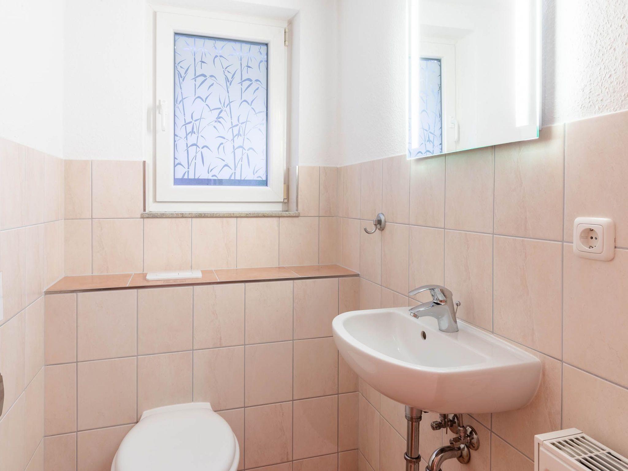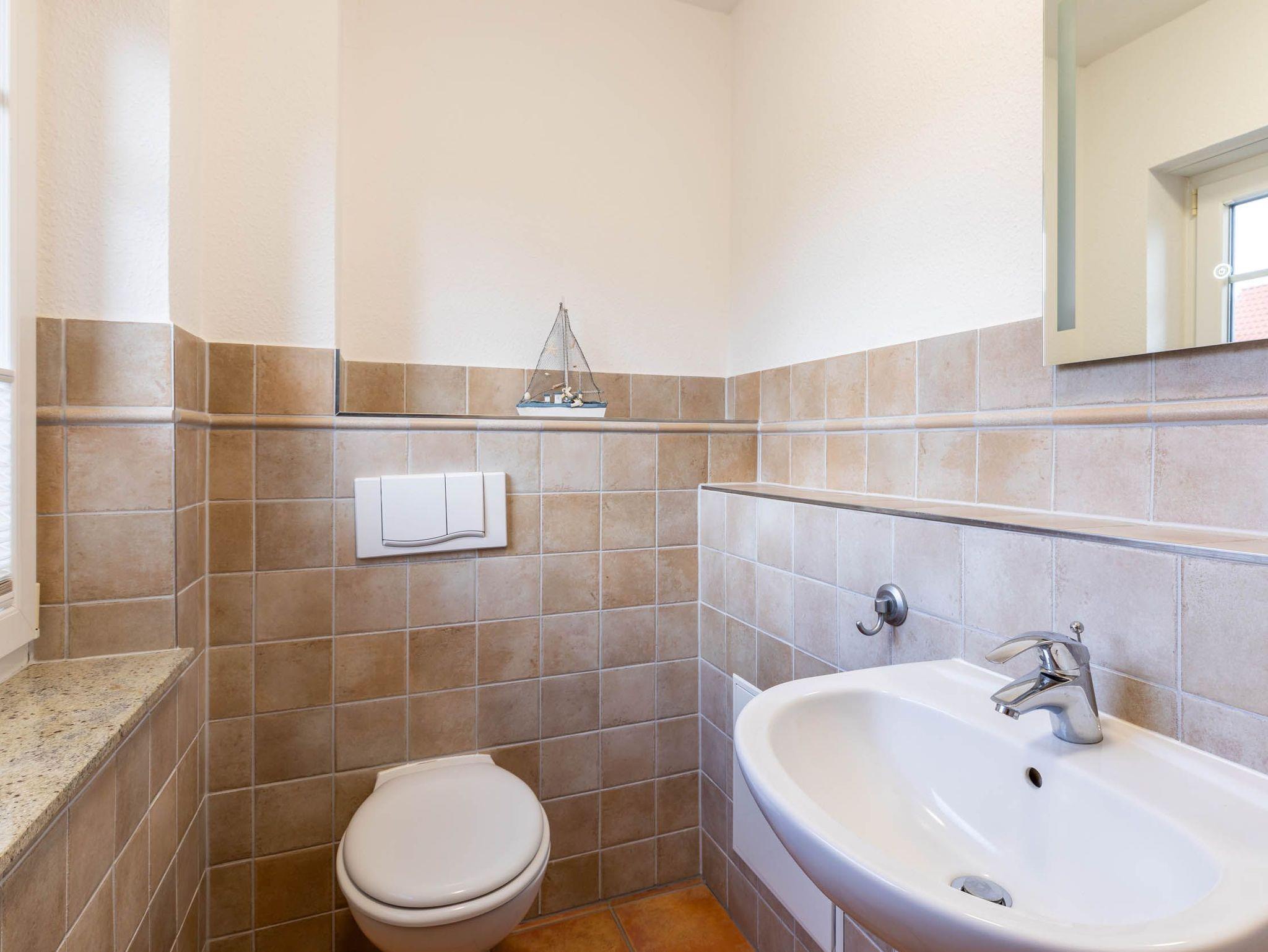Des Weiteren befinden sich im Erdgeschoss eine Diele mit einer Kommode und eine Garderobe sowie ein Gäste-WC.