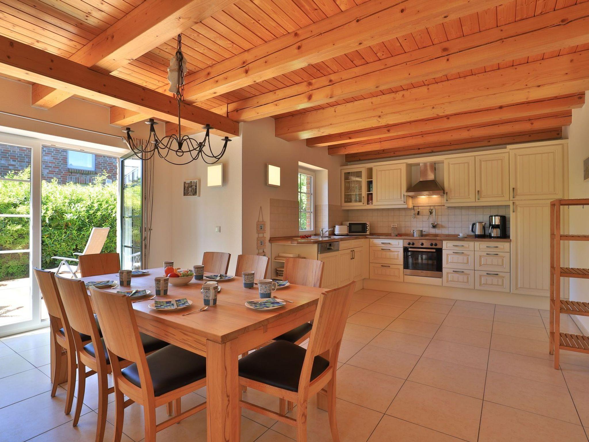 Sehr komfortabel empfängt Sie das familienfreundliche Einzel-Ferienhaus Wellenreiter mit einer großzügigen Wohnfläche von 140qm und bietet Platz für bis zu 8 Personen. Die durchdachte Raumaufteilung sorgt für viel Komfort und ein angenehmes Wohngefühl für Familien und Gruppen. Der helle und gemütliche Wohn- und Essbereich ist in freundlichen Farben gestaltet und lädt zum Entspannen ein. Hier stehen Ihnen ein Kaminofen, TV, DVD sowie WLAN zur Verfügung. Die offene und komplett ausgestattete Komfort-Einbauküche ist harmonisch in den Wohnbereich integriert und bietet alles, was Sie für einen entspannten Aufenthalt benötigen. Vom Wohnbereich aus gelangen Sie direkt auf die saisonal möblierte Süd-West-Terrasse und in den großen Garten, der viel Platz zum Verweilen und Spielen bietet. Im Erdgeschoss befindet sich außerdem ein Schlafzimmer mit Doppelbett und Kleiderschrank sowie ein modernes Tageslicht-Duschbad. Zusätzlich steht Ihnen eine Waschmaschine zur Verfügung. Über eine Treppe erreichen Sie das gemütliche Obergeschoss mit drei weiteren Schlafzimmern. Zwei der Schlafzimmer sind jeweils mit einem Doppelbett und einem Kleiderschrank ausgestattet. Das dritte Schlafzimmer verfügt über zwei Einzelbetten und einen Kleiderschrank. Das geräumige Wellness-Vollbad bietet zusätzliche Erholung: Hier erwartet Sie eine Sauna für bis zu 6 Personen, die gegen Gebühr (0,70 ? pro kWh) genutzt werden kann. Für Familien mit kleinen Kindern stehen ein Kinderhochstuhl und ein Kinderreisebett bereit. Zwei kostenfreie PKW-Stellplätze befinden sich direkt auf dem Grundstück. Das Ferienhaus ist ein Nichtraucherhaus, Haustiere sind nicht gestattet. Bitte beachten Sie, dass bei der Anreise eine Kaution in Höhe von 250,00 ? erhoben wird.