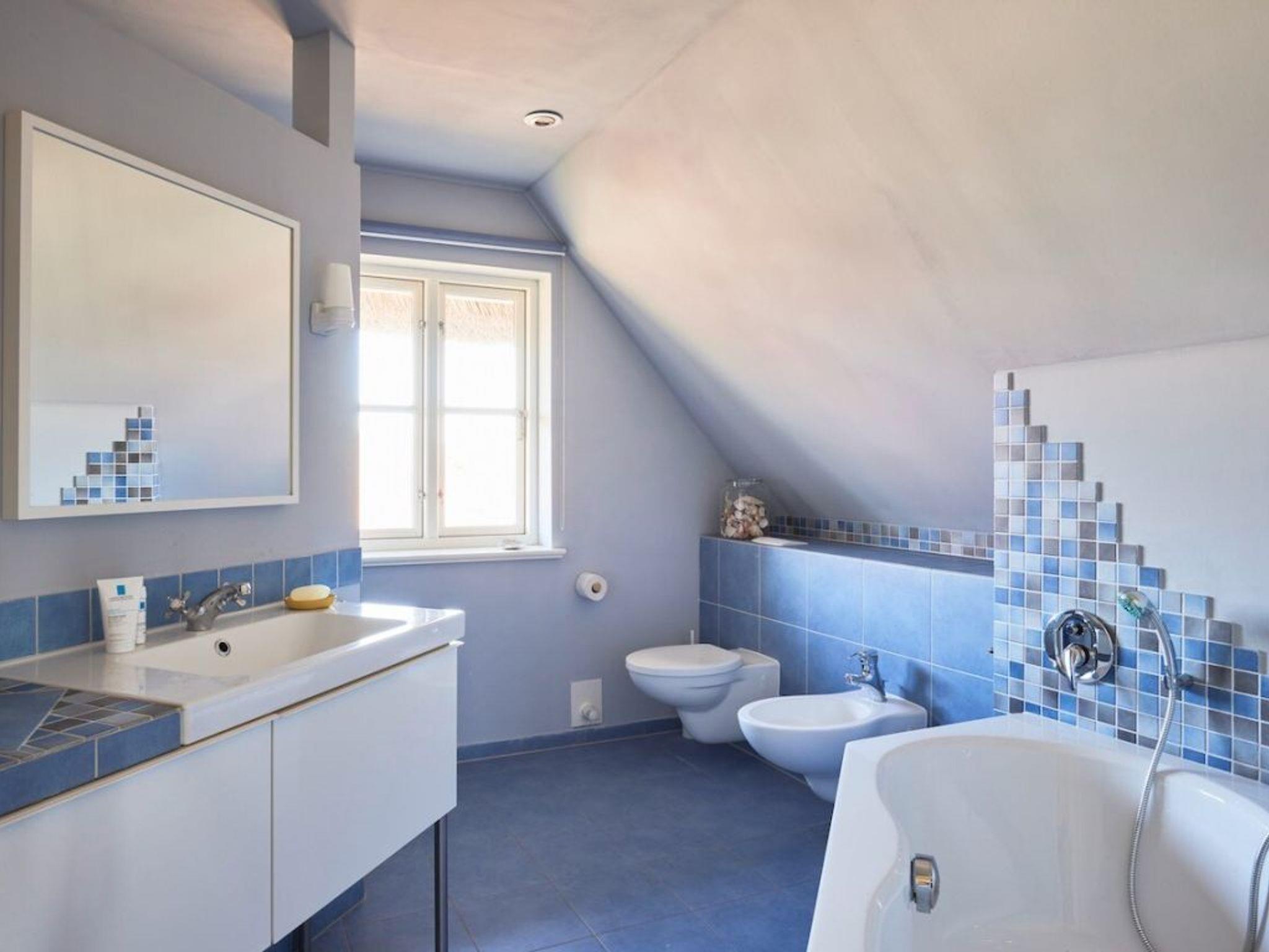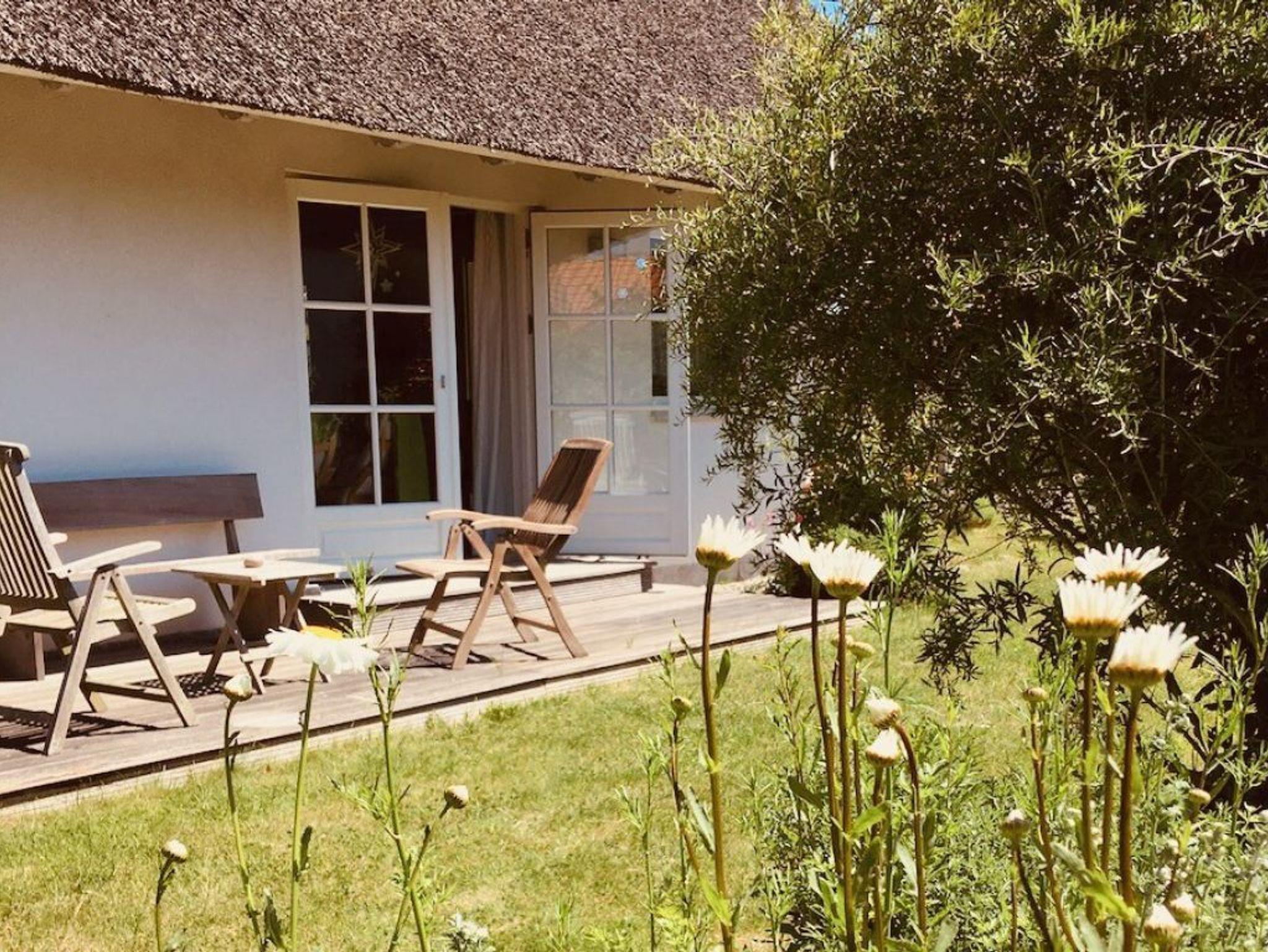 Mit einer Wohnfläche von 127qm ist dieses großzügige Ferienhaus unter Reet für eine Belegung mit bis zu 5 Personen nahezu perfekt. In nur 800 Meter gelangen Sie zum wunderschönen Strand mit guten Bademöglichkeiten. Das sehr hochwertig eingerichtete Einzelhaus erstreckt sich über zwei Etagen. Im Erdgeschoss, welches sich mit einem großflächigen Eingangsbereich präsentiert erwarten Sie sehr einladend möblierte Zimmer. Der behagliche Wohn-/Essbereich mit bequemer Couch und dem großen Esstisch, bietet Ihnen einen Kaminofen für wohlige Wärme. Kaminholz ist vorhanden. Selbstverständlich befinden sich auch ein TV-Gerät, DVD und Musikanlage im Wohnzimmer. Die familienfreundliche Ausstattung beinhaltet einen Kinderhochstuhl. Hochwertig ist die Küche, die geschickt in den Wohnraum integriert wurde. Zwei Terrassen, wovon eine überdacht ist, sind von der Küche und vom Wohnzimmer aus zu betreten. Somit können Sie im Sommer Ihre Mahlzeiten im Freien genießen und sich wunderbar entspannen. Der hübsch angelegte Garten lädt zum Sonnenbaden und Spielen ein. Außerdem befinden sich im Erdgeschoss des Hauses ein Arbeitszimmer wie auch ein gehoben gefliestes Duschbad. Im Hauswirtschaftsraum ist die Nutzung von Waschmaschine und Wäschetrockner gegeben. Über eine Holztreppe gelangen Sie in das Obergeschoss, wo sich im Flurbereich ein zweiter Fernseher und eine Sitzgelegenheit befinden. Des Weiteren sind auf dieser Etage zwei Schlafzimmer mit Doppelbett, davon eines der Schlafzimmer mit Balkon, sowie ein drittes Schlafzimmer mit einem Einzelbett. Das geräumige Badezimmer besitz ein Fenster und bietet Ihnen eine Badewanne wie auch eine ebenerdige Dusche, Bidet und WC. Das gesamte Ferienobjekt wird über eine Fußbodenheizung angenehm gewärmt. Insbesondere hervorzuheben ist, dass in diesem Haus ausschließlich naturbelassene Baumaterialien verwendet wurden. Gebührenfrei nutzen Sie den PKW-Außenstellplatz am Haus.