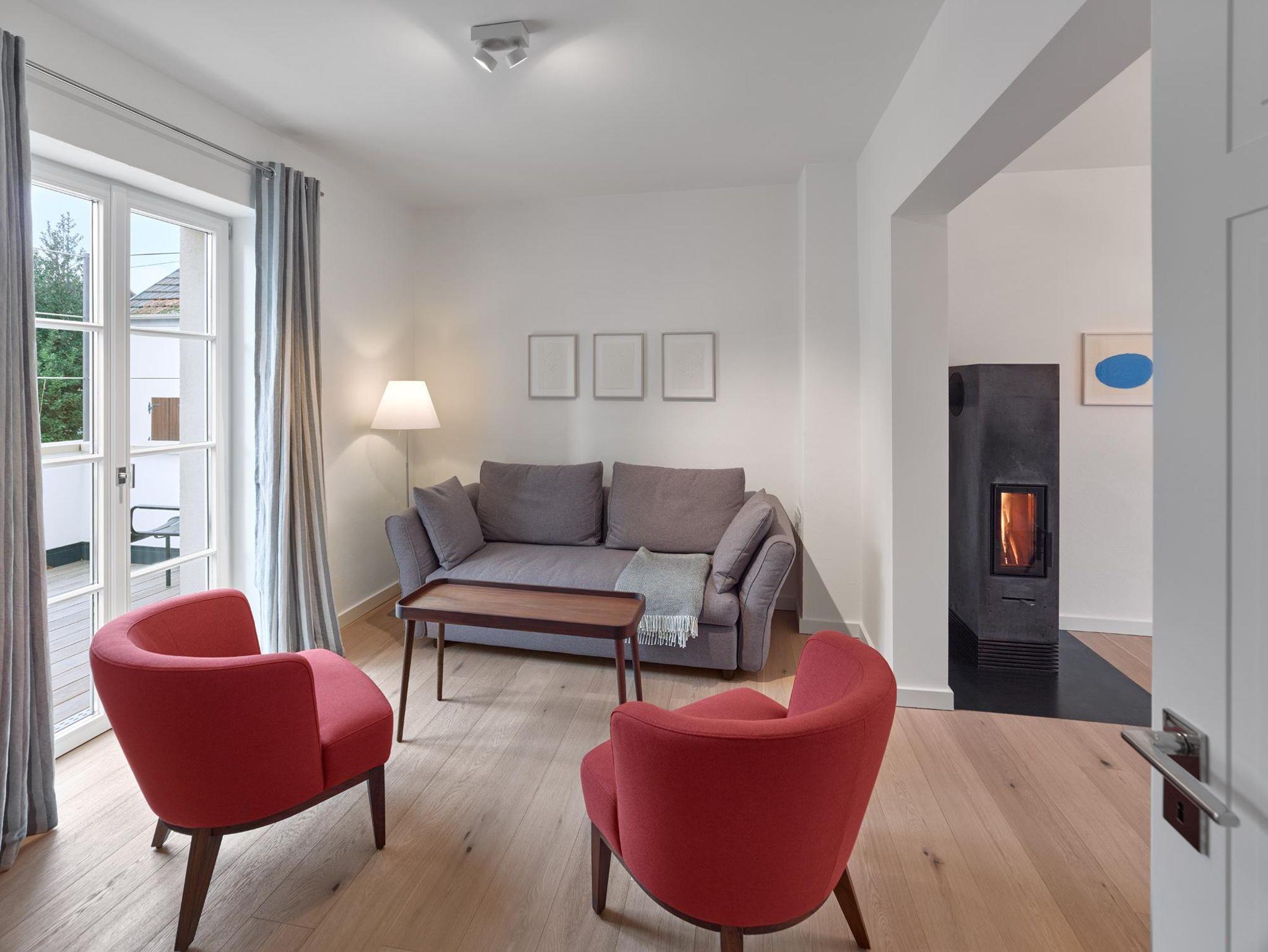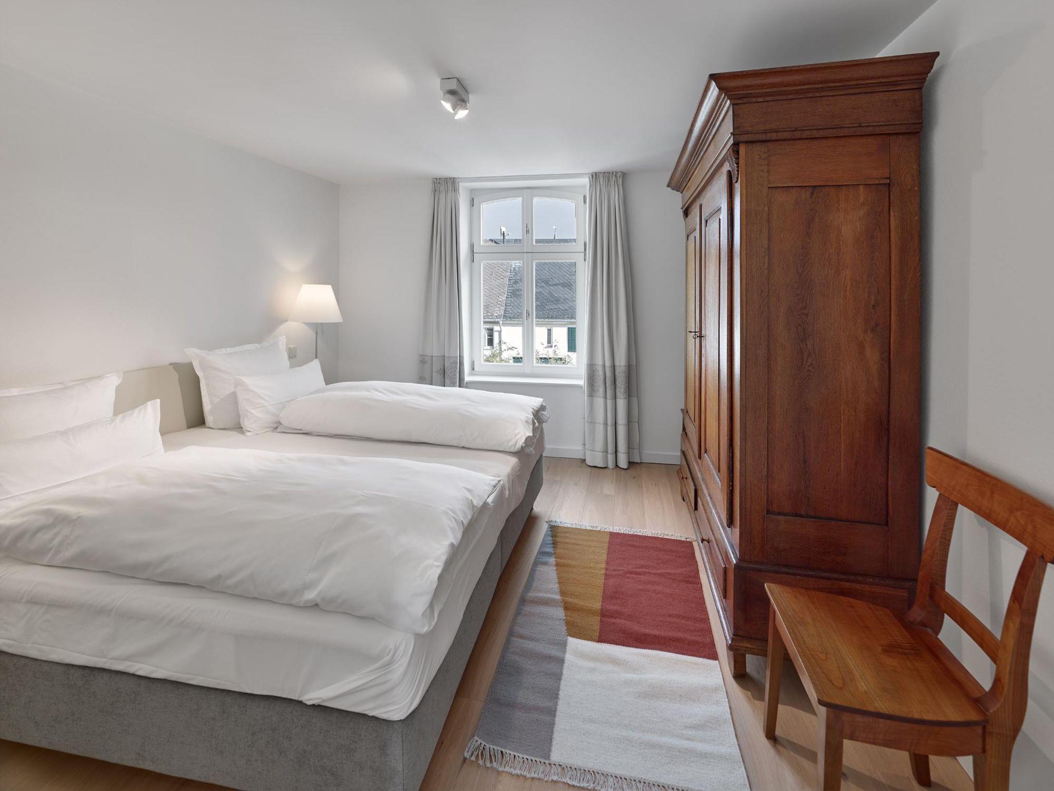 Zwei Zimmer in der neu erbauten Remise, benannt nach den Weinlagen Klosterberg und Kupp, erwarten Sie mit durchdachtem Design und puristischer Formensprache: Übernachten in der Gedankenwelt des Architekten.